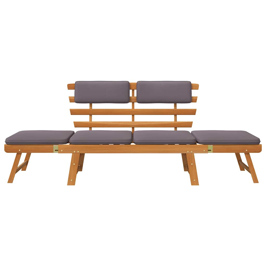 Ez a kültéri fa napozóágy/kerti pad a stílus és a funkcionalitás kombinációja és kertje, terasza gyöngyszeme lesz. A napozóágy az állítható oldalaknak köszönhetően gyorsan és egyszerűen alakítható padból ággyá, és vissza. A megerősített támasztás érdekében mindkét oldalon extra lábakkal rendelkezik. A vastag és kivehető hát-, ülő- és karpárnák kényelmesek ülés és fekvés esetén is. A párnahuzatok könnyen levehetőek és moshatóak. Az ágy rácsos alja jó szellőzést biztosít pihenéskor. A napozóágy/kerti pad akácfából, egy trópusi keményfából készült, amely időjárásálló, és vékony olajbevonatot kapott, ezért kültéri használatra is alkalmas. A napozóágy könnyen összeszerelhető.