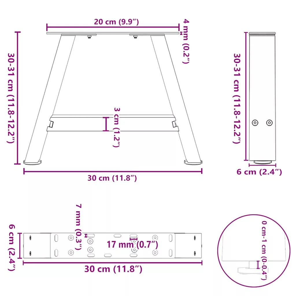 2 db A-alakú fekete dohányzóasztal láb 30 x (30-31) cm acél