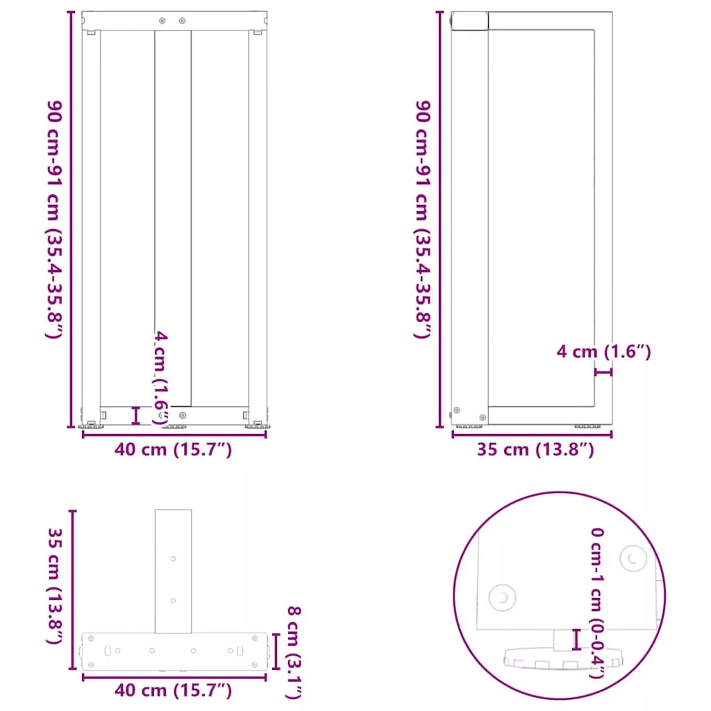 • Teljes méretek: 40 x 35 x (90-91) cm (Sz x M x Ma)