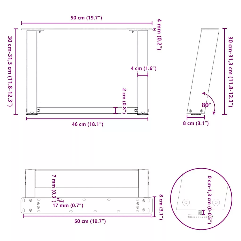 Ezek a dohányzóasztal lábak ötvözik a formát és a funkciót. Ideális választás dohányzóasztalod személyre szabásához. Tartós anyag: Ez a bútorasztal láb porszórt acélból készült, így masszív és hosszú élettartamú.Masszív szerkezet: A fém asztalláb 80 fokos dőlésszögű kialakítása biztosítja, hogy nehéz asztallapot is elbírjon.Praktikus kialakítás: Ez az asztalláb állítható lábszintezőkkel rendelkezik, amelyek stabilitást biztosítanak még egyenetlen padlón is, és minimalizálják a padló karcolódását. Ezenkívül a konzol előre fúrt lyukakkal és a szállításban mellékelt csavarokkal rendelkezik, amelyekkel a láb az asztallaphoz rögzíthető (nem tartozék), így könnyen összeszerelhető.Modern esztétika: Az asztalláb letisztult vonalakkal és geometrikus kialakítással rendelkezik, hogy javítsa a bútor összképét. És bármilyen megfelelő méretű asztallaphoz jól illik. Jó tudni:A szállítmány csak az asztallábakat tartalmazza, az asztallap nem.