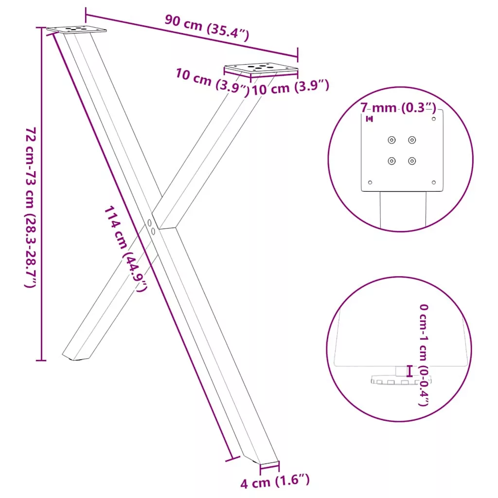 2 db X alakú étkezőasztal láb fekete, 90 x (72-73) cm acél