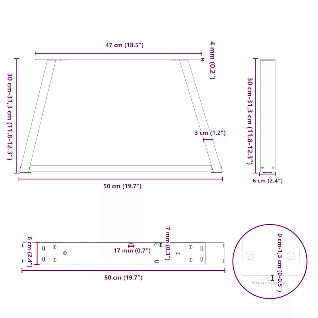 2 db antracitszürke, V-alakú acél dohányzóasztal láb 50 x (30-31,3) cm