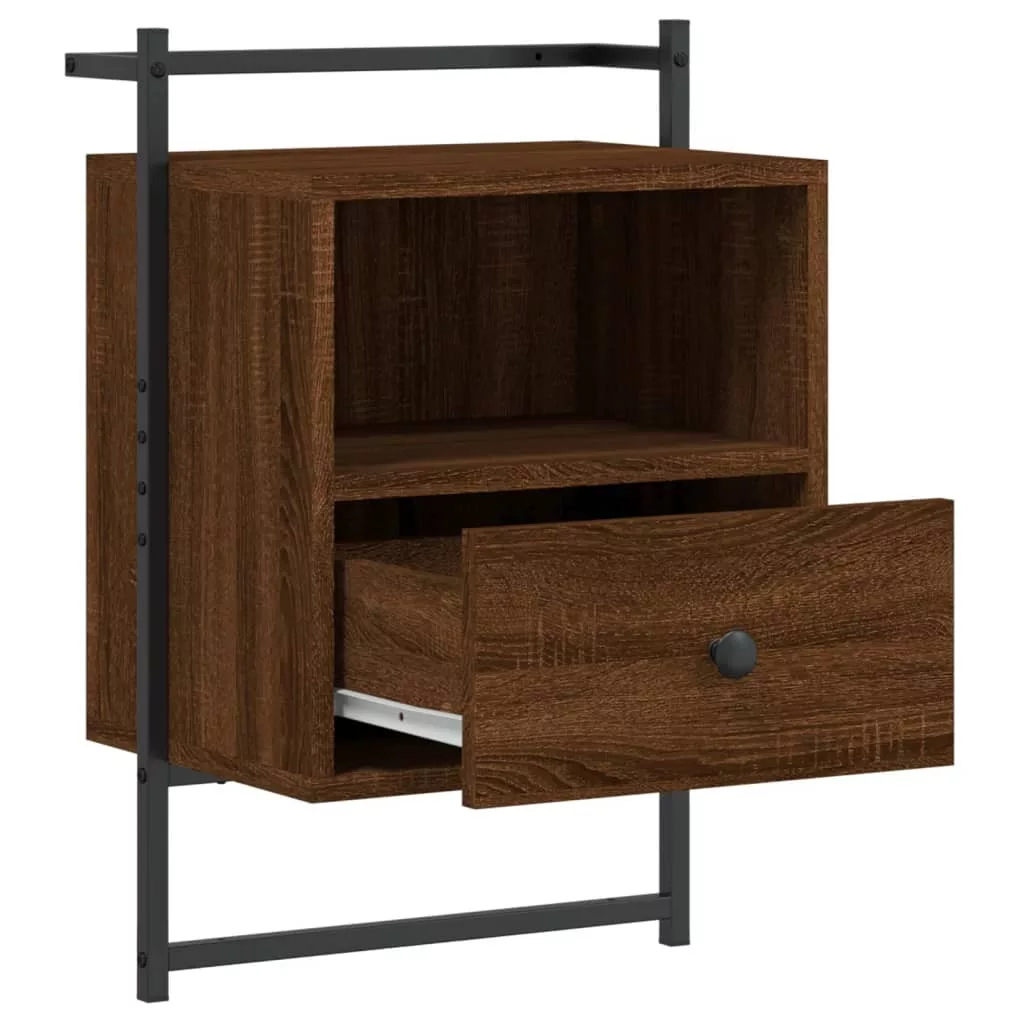 2 db barna tölgy szerelt fa fali éjjeliszekrény 40 x 30 x 61 cm