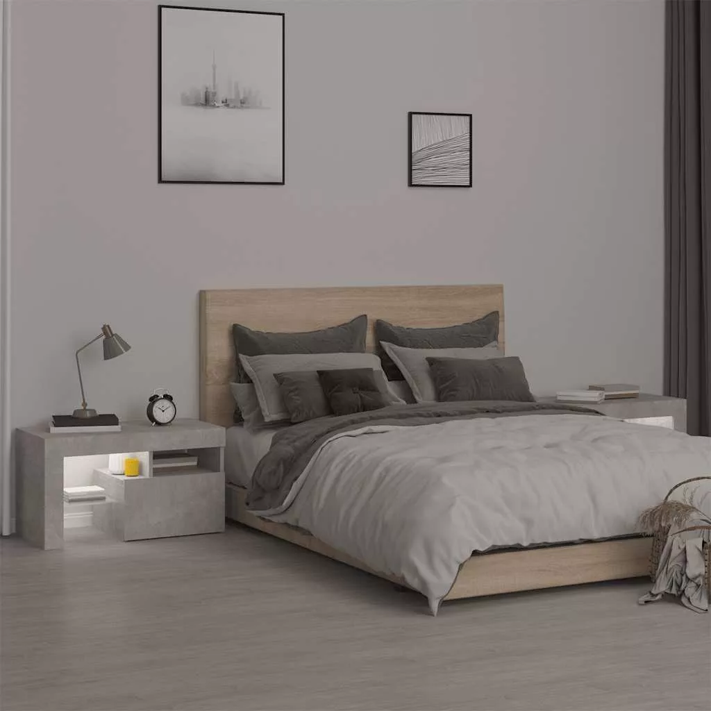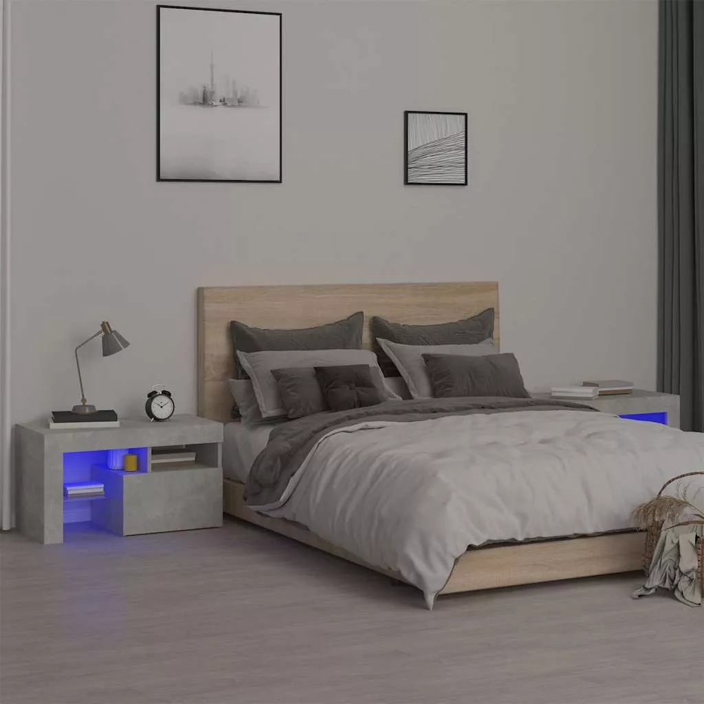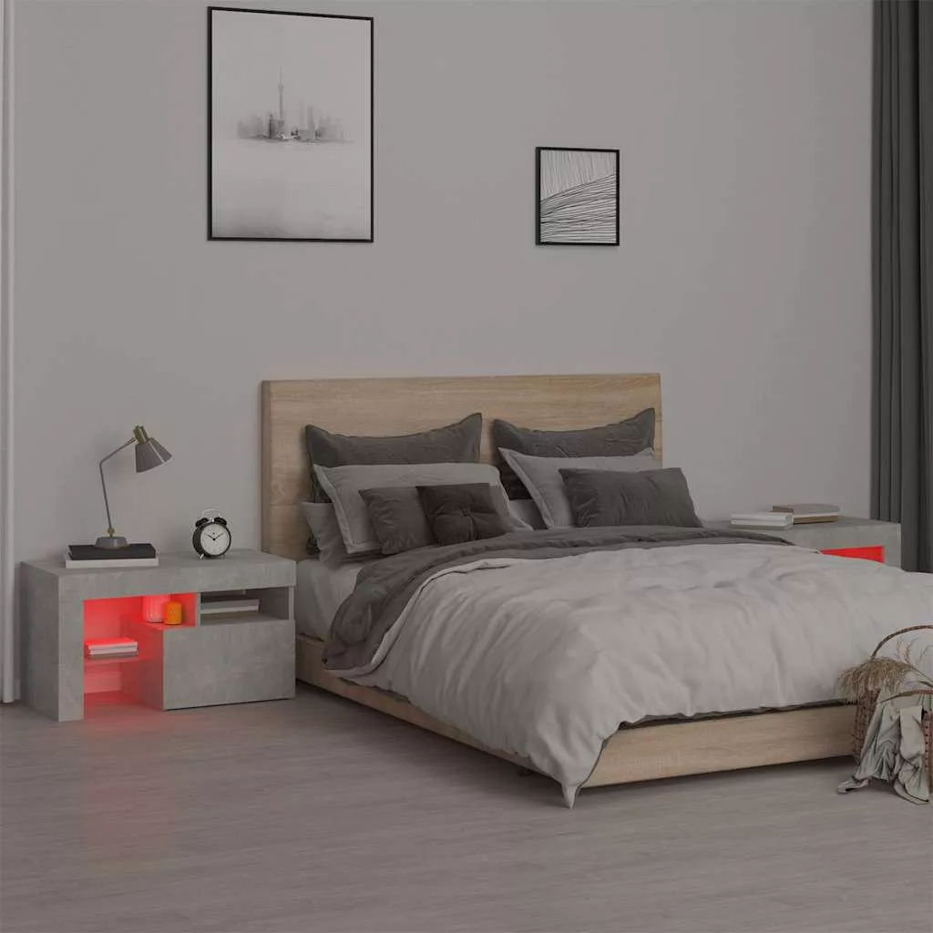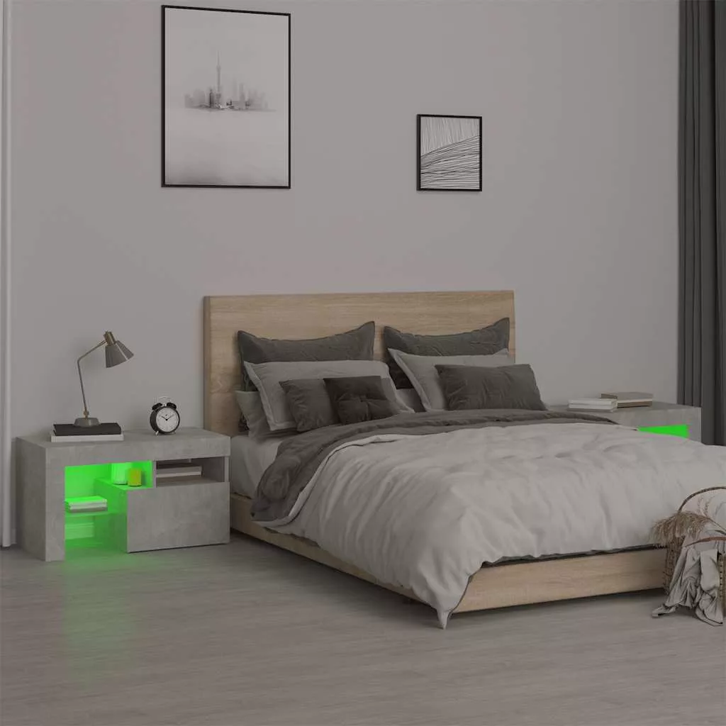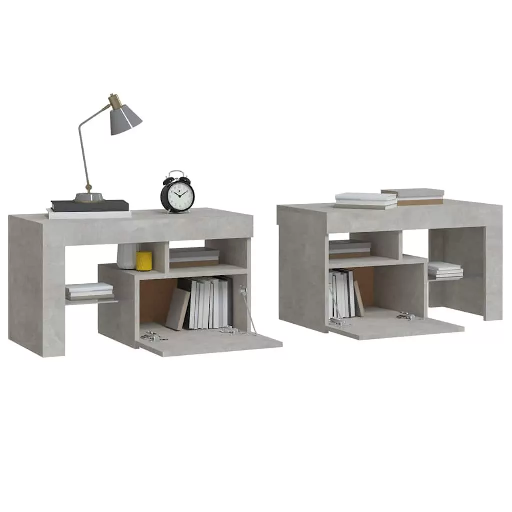 vidaXL 2 db betonszürke LED-lámpás éjjeliszekrény 70x36,5x40 cm