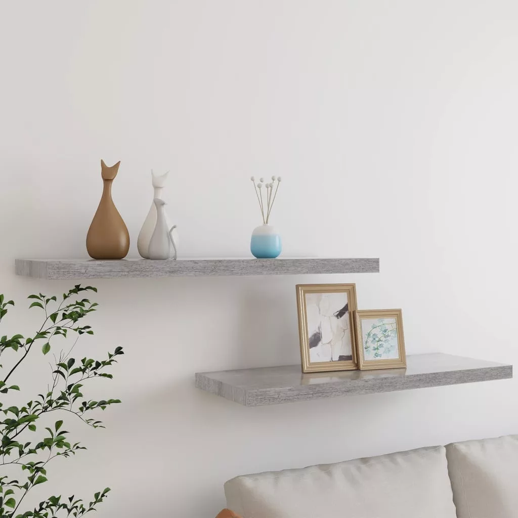 2 db betonszürke MDF lebegő fali polc 80 x 23,5 x 3,8 cm