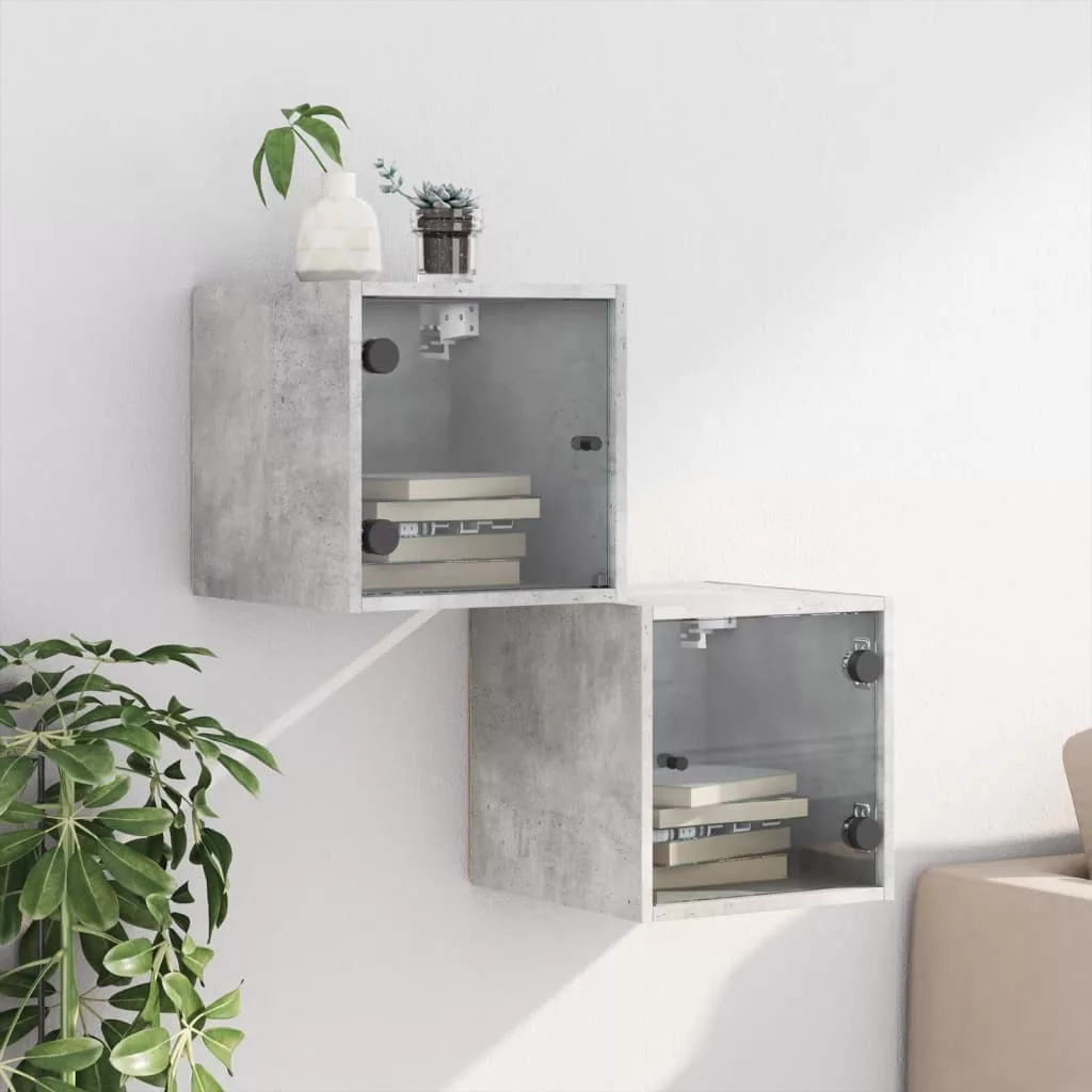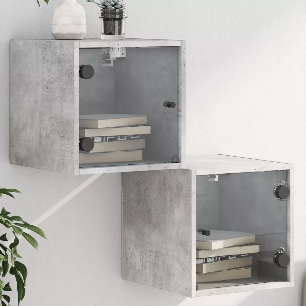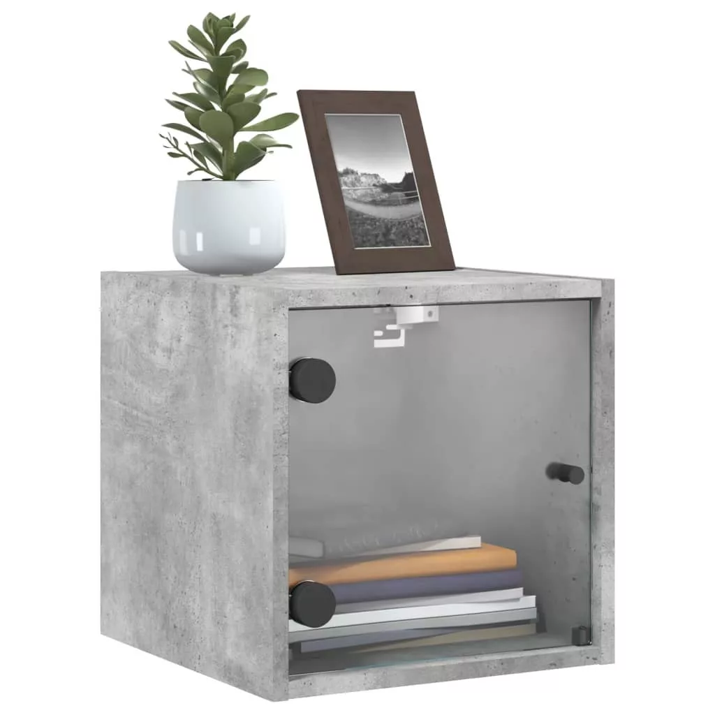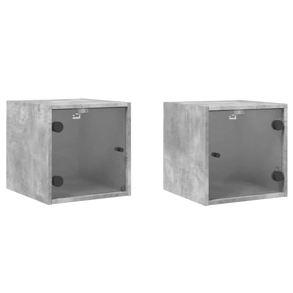 2 db betonszürke éjjeliszekrény üvegajtóval 35 x 37 x 35 cm