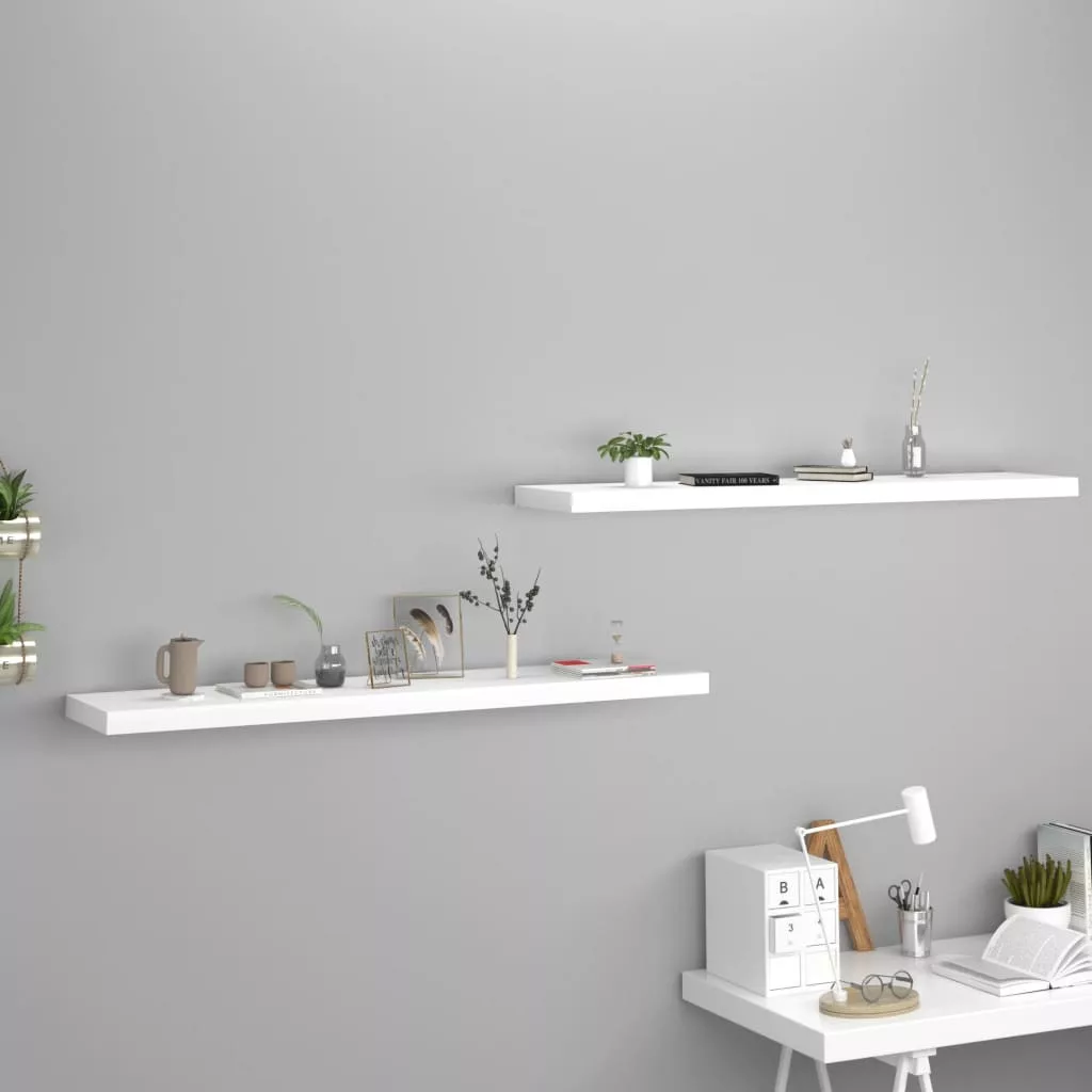 2 db fehér MDF lebegő fali polc 120 x 23,5 x 3,8 cm