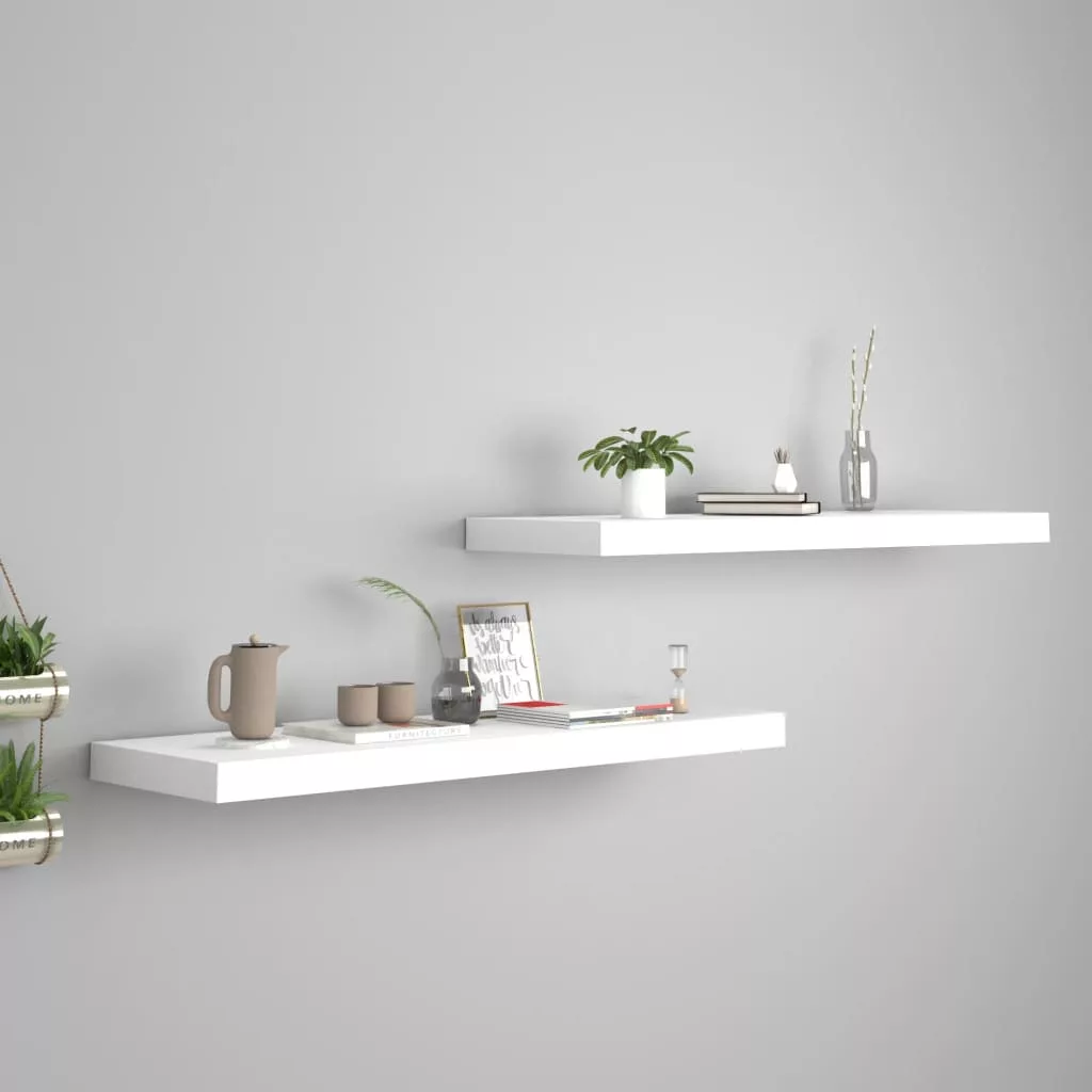 2 db fehér MDF lebegő fali polc 80 x 23,5 x 3,8 cm