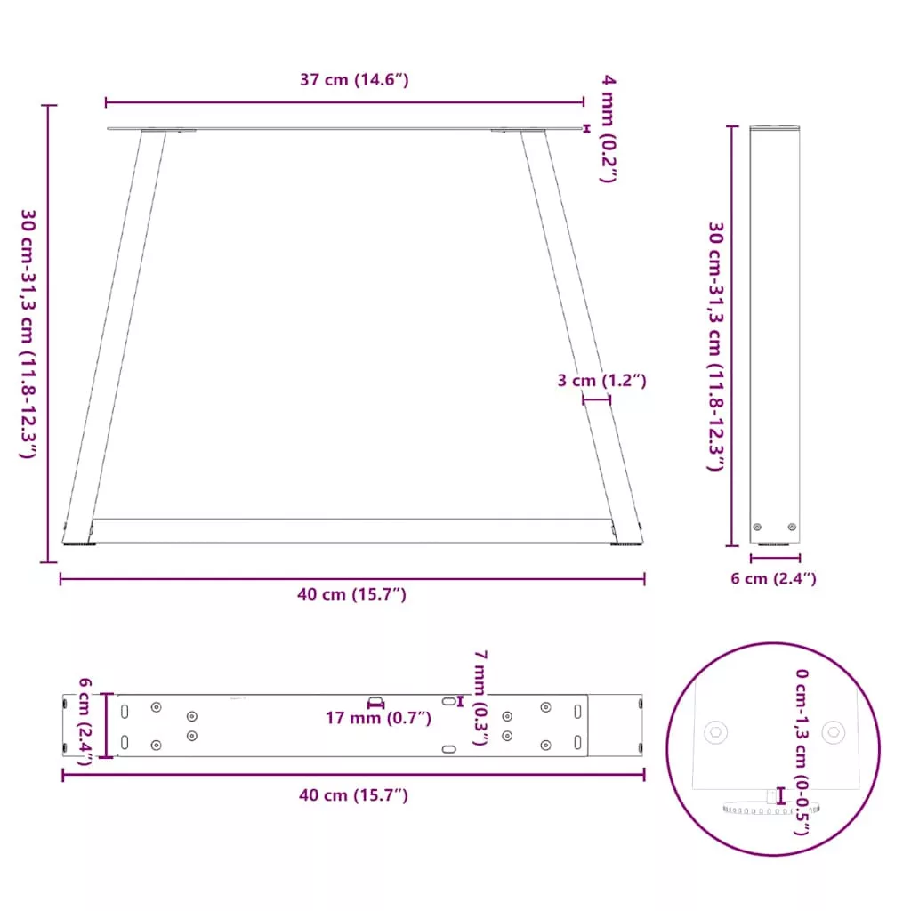 Ezek a dohányzóasztal lábak ötvözik a formát és a funkciót. Ideális választás dohányzóasztala személyre szabásához. Tartós anyag: Ez a dohányzóasztal láb porszórt acélból készült, így masszív és hosszú élettartamú.Praktikus kialakítás: Ez a dohányzóasztal láb állítható szintezőkkel rendelkezik, amelyek stabilitást biztosítanak még egyenetlen padlón is, és minimalizálják a padló karcolódását. Ezenkívül a konzol előre fúrt lyukakkal és a szállítási terjedelemben mellékelt csavarokkal rendelkezik, amelyekkel a láb az asztallaphoz rögzíthető (nem tartozék), így könnyen összeszerelhető.Modern esztétika: Az asztalláb letisztult és modern megjelenést kölcsönöz. Letisztult vonalai és geometrikus kialakítása fokozza a bútor összképét. Jó tudni:A szállítás csak az asztallábakat tartalmazza, az asztallap nem része a csomagnak.