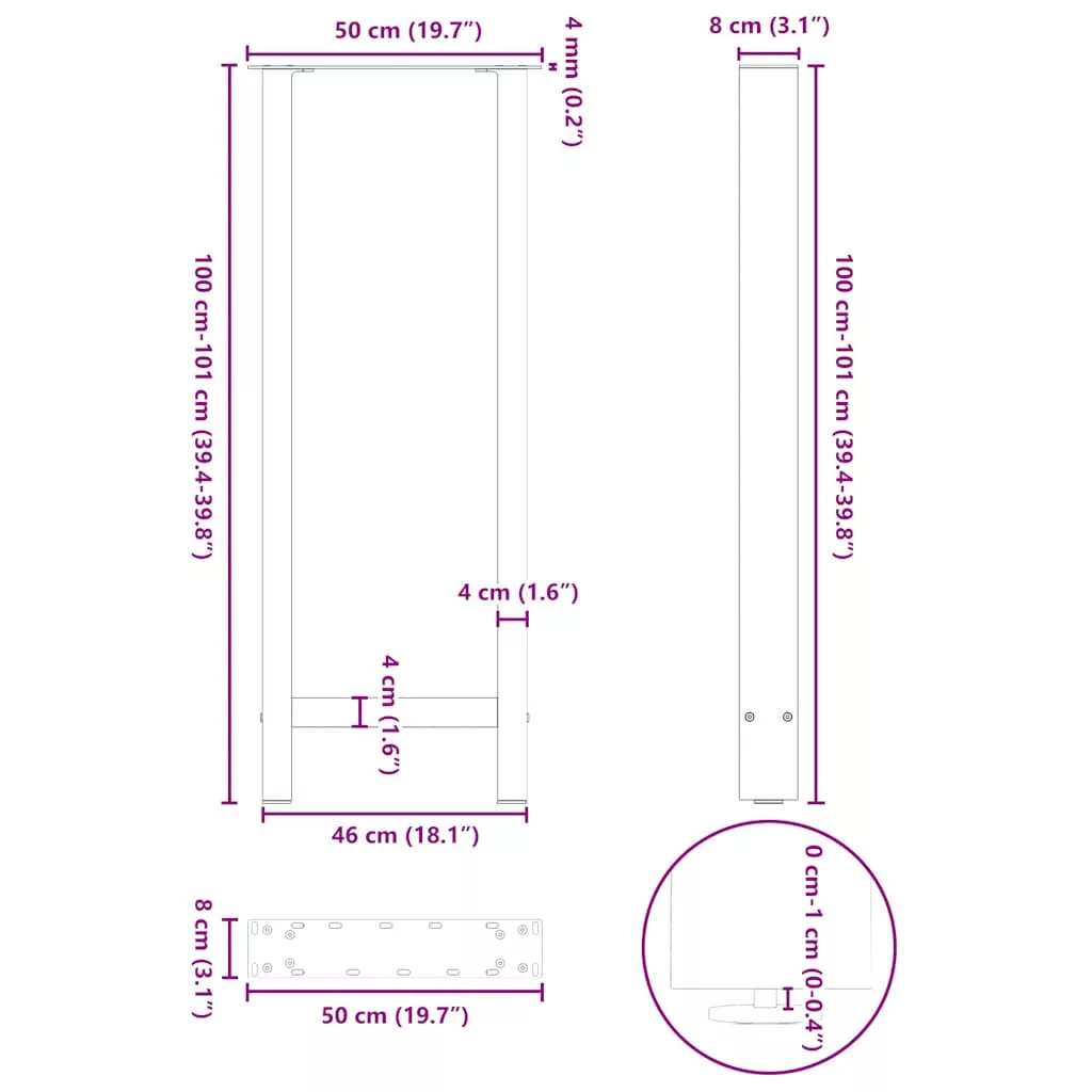 Ezek a bárasztal lábak ötvözik a formát és a funkciót. Ideális választás bárasztalod személyre szabásához. Tartós anyag: Ez a bárasztal láb porszórt acélból készült, így masszív és hosszú élettartamú.Masszív szerkezet: A bárasztal lábának négyzet alakú kialakítása biztosítja, hogy elbírja a nehéz asztallapot.Praktikus kialakítás: Ez a bárasztal láb állítható lábszintezőkkel rendelkezik, amelyek biztosítják a stabilitást még egyenetlen padlón is, és minimalizálják a padló karcolódását. Ezenkívül a konzol előre fúrt lyukakkal és a szállítmányban található csavarokkal rendelkezik, amelyekkel a láb az asztallaphoz rögzíthető (nem tartozék), így könnyen összeszerelhető.Modern esztétika: Az asztalláb letisztult vonalakkal és geometrikus kialakítással rendelkezik, hogy javítsa a bútor összképét. És bármilyen megfelelő méretű asztallaphoz jól illik.Jó tudni:A szállítmány csak az asztallábakat tartalmazza, az asztallap nem része a csomagnak.