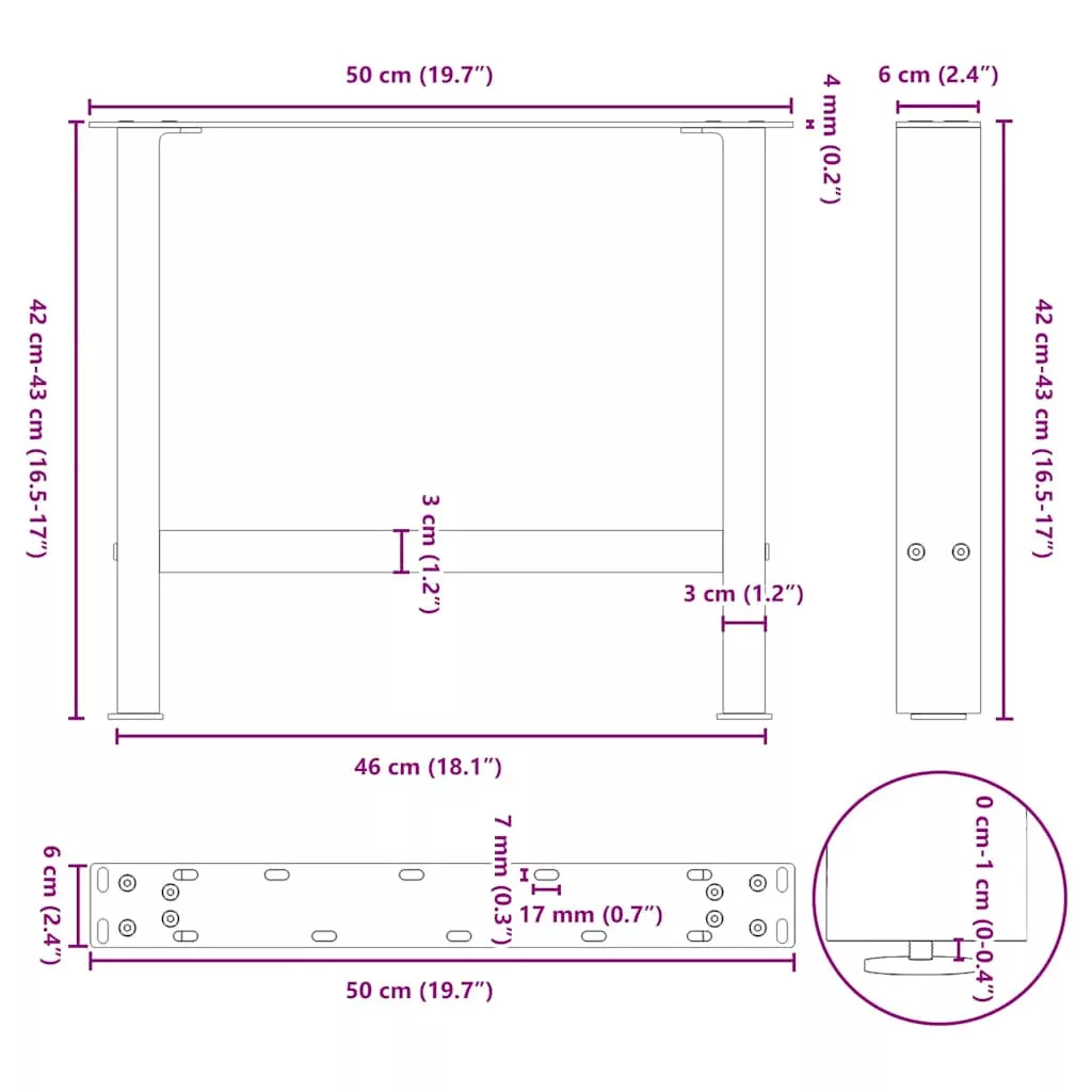 Ezek a dohányzóasztal lábak ötvözik a formát és a funkciót. Ideális választás dohányzóasztala személyre szabásához. Tartós anyag: Ez a dohányzóasztal láb porszórt acélból készült, így masszív és hosszú élettartamú.Masszív szerkezet: A dohányzóasztal lábának négyzet alakú kialakítása biztosítja, hogy elbírja a nehéz asztallapot.Praktikus kialakítás: Ez a dohányzóasztal láb állítható lábszintezőkkel rendelkezik, amelyek biztosítják a stabilitást még egyenetlen padlón is, és minimalizálják a padló karcolódását. Ezenkívül a konzol előre fúrt lyukakkal és a szállítási terjedelemben mellékelt csavarokkal rendelkezik, amelyekkel a láb az asztallaphoz rögzíthető (nem tartozék), így könnyen összeszerelhető.Modern esztétika: Az asztalláb letisztult vonalakkal és geometrikus kialakítással rendelkezik, hogy javítsa a bútor összképét. És bármilyen megfelelő méretű asztallaphoz jól illik.Jó tudni:A szállítás csak az asztallábakat tartalmazza, az asztallap nem része a csomagnak.