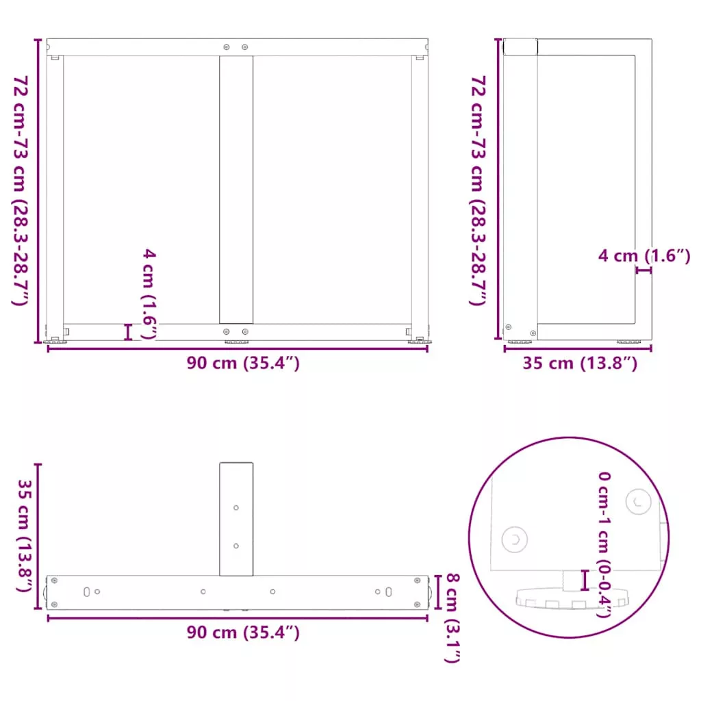 2 db fekete, T-alakú étkezőasztal láb 90x35x(72-73) cm acél étkezőasztal