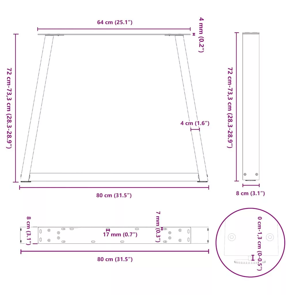 2 db fekete, V-alakú acél étkezőasztal láb 80 x (72-73,3) cm