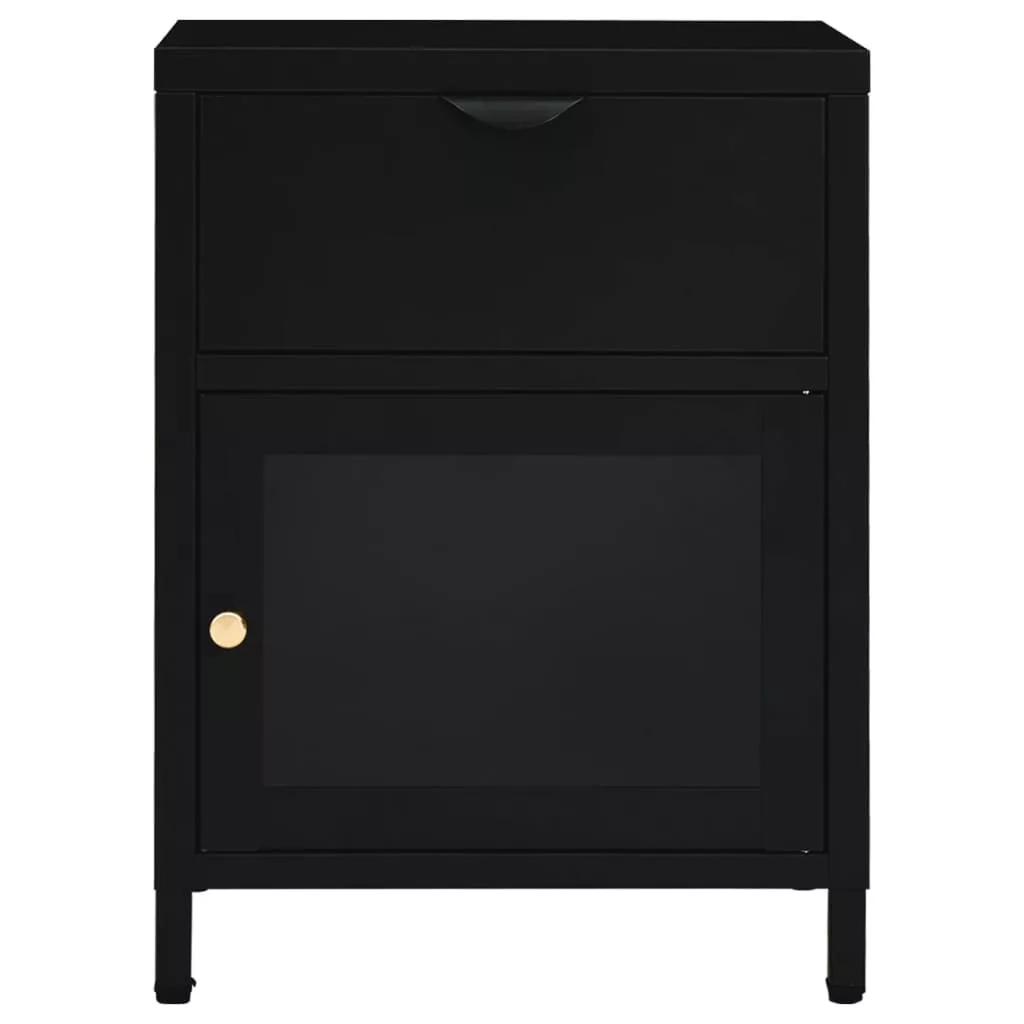 2 db fekete acél és üveg éjjeliszekrény 40 x 30 x 54,5 cm