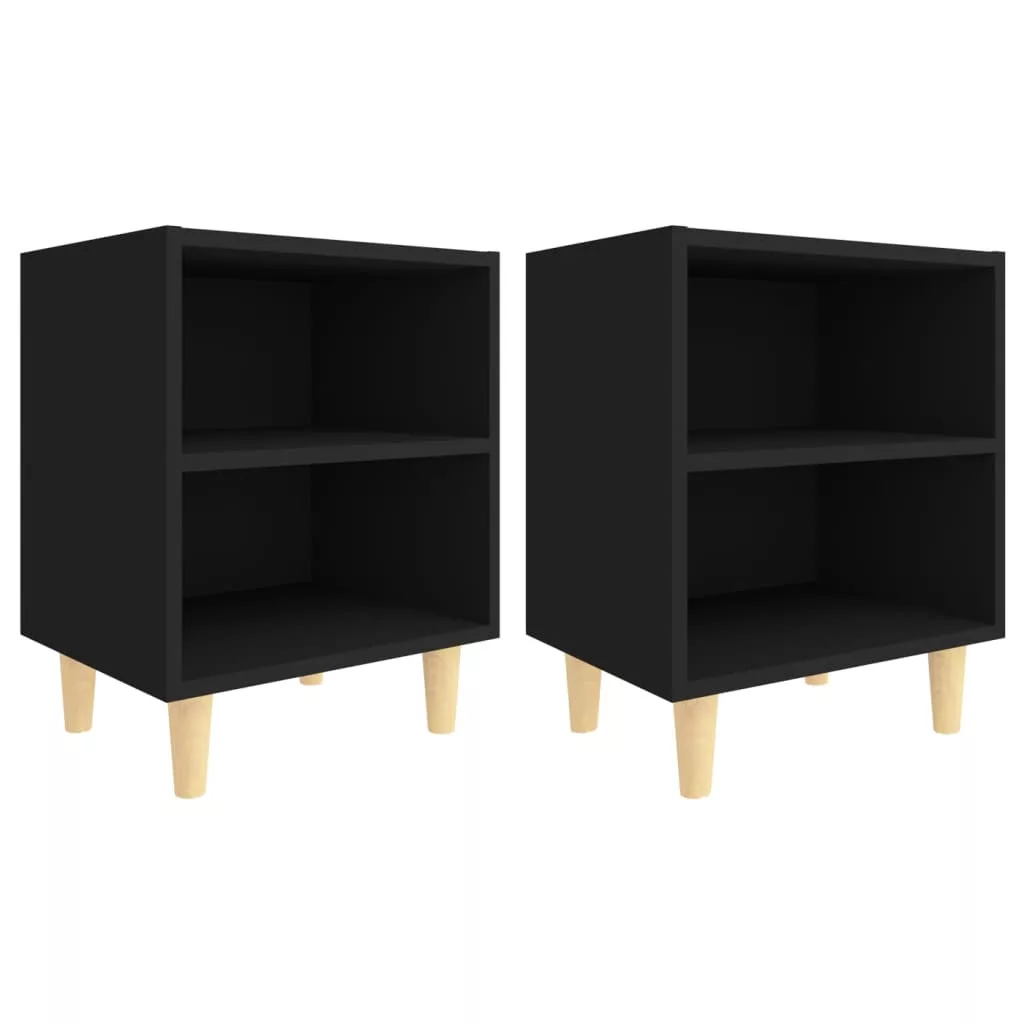 2 db fekete éjjeliszekrény tömör fa lábakkal 40 x 30 x 50 cm