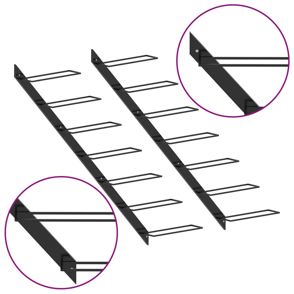 2 db fekete fém falra szerelhető bortartó állvány 14 palacknak
