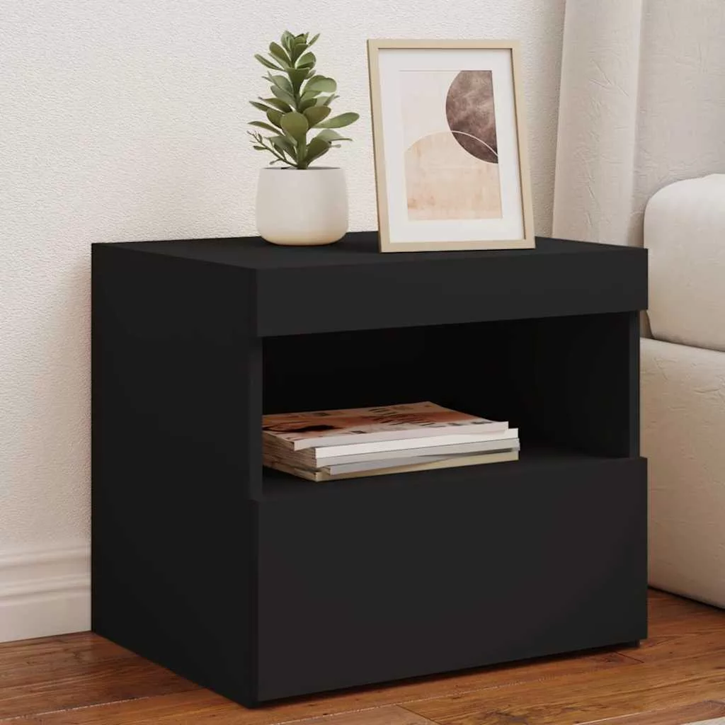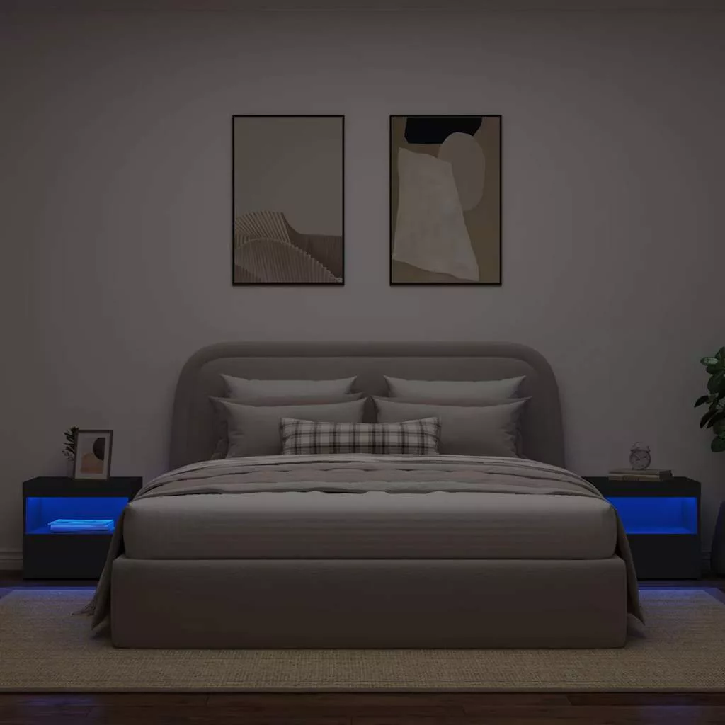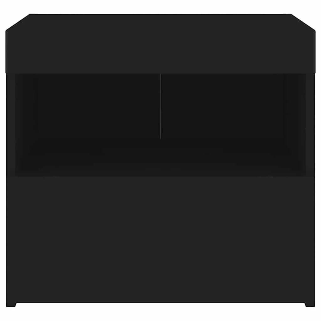 2 db fekete műfa éjjeliszekrény LED-fényekkel 50x40x45 cm