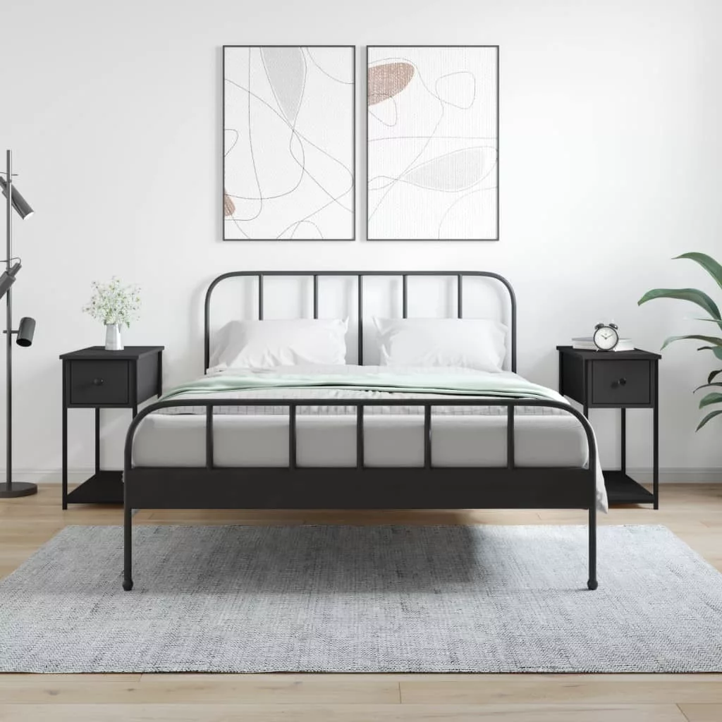 2 db fekete szerelt fa éjjeliszekrény 30x60x60 cm