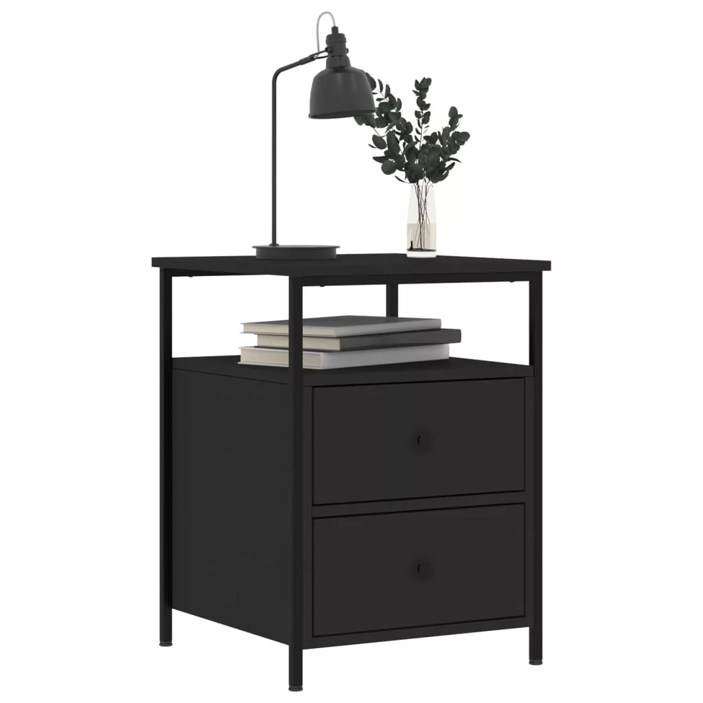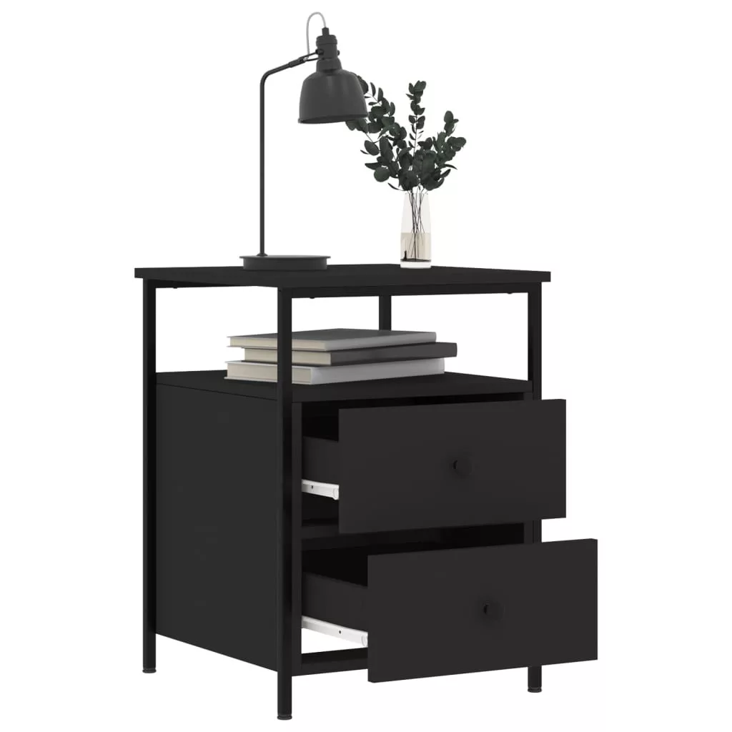2 db fekete szerelt fa éjjeliszekrény 44x45x60 cm