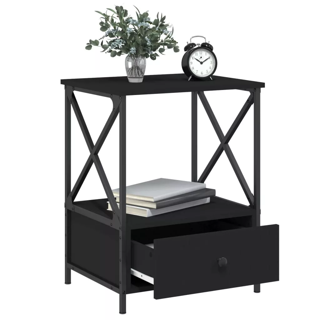 Ezek az ipari stílusú éjjeliszekrények időtlen kiegészítői lesz lakberendezésének. Tartós anyag: A szerelt fa kivételes minőségű, sima felületű, szilárd, stabil, és ellenáll a nedvességnek.Masszív váz: Az éjjeliszekrény vasváza masszív szerkezetet és stabilitást biztosít.Bőséges tárolóhely: Az ágy melletti asztal bőséges helyet biztosít alapvető holmijai kézközelben történő rendezett tárolásához.Állítható lábak: Az éjjeliszekrény 4 állítható lábbal van felszerelve, amelyek megvédik a padlót a karcolásoktól, és stabilan tartják azt egyenetlen padlón.Bemutatófunkció: Kedvenc fotóit, dekorációit vagy virágait is elhelyezheti a ágy melletti szekrény tetején a szoba dekorációjának gazdagítása érdekében. Figyelem:A felborulás elkerülése érdekében ezt a terméket a mellékelt fali rögzítőeszközzel kell használni.