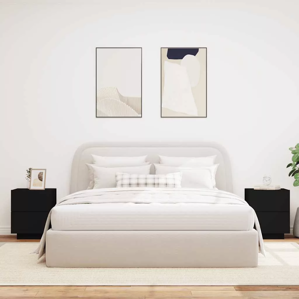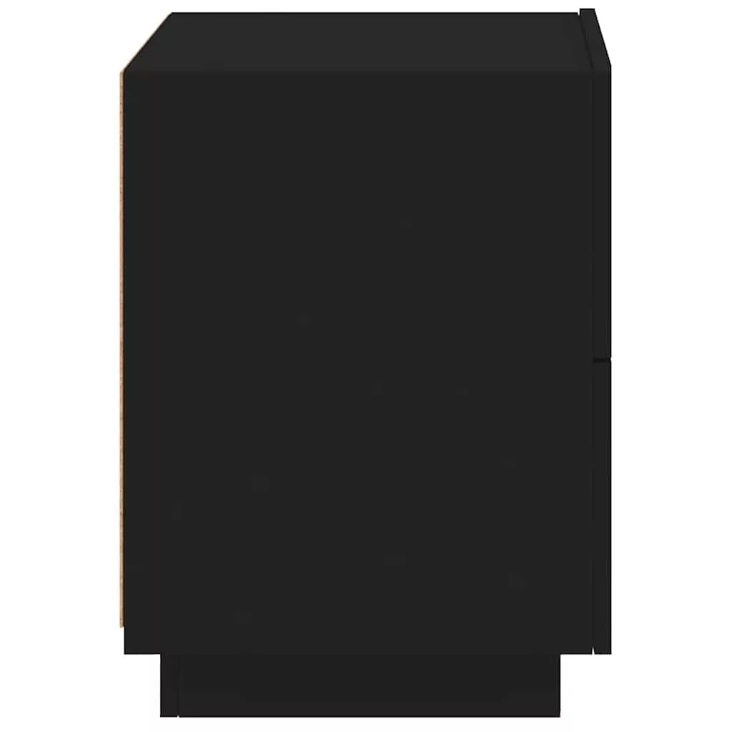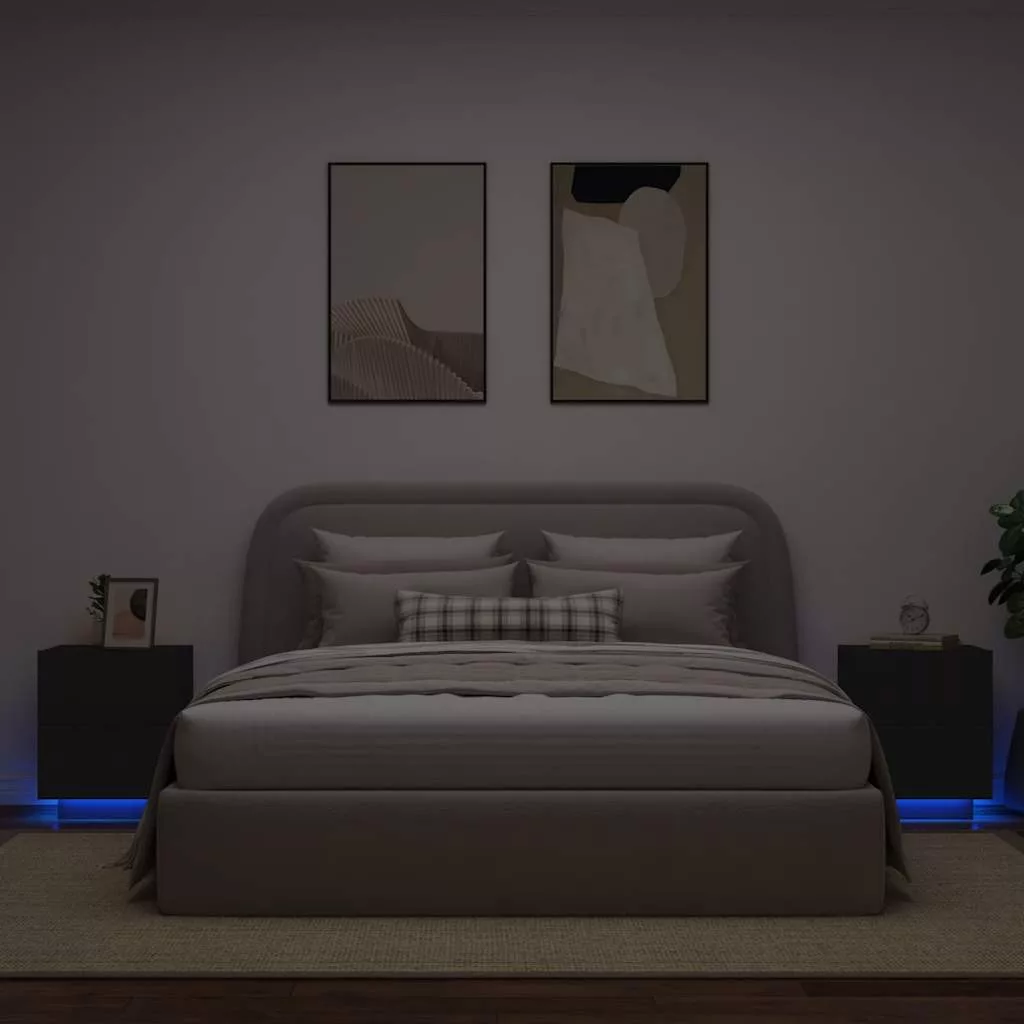 2 db fekete szerelt fa éjjeliszekrény LED-fényekkel