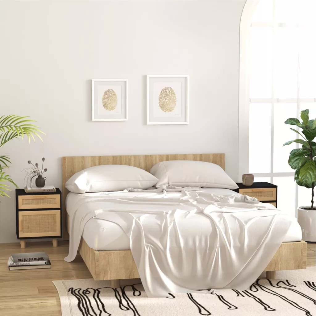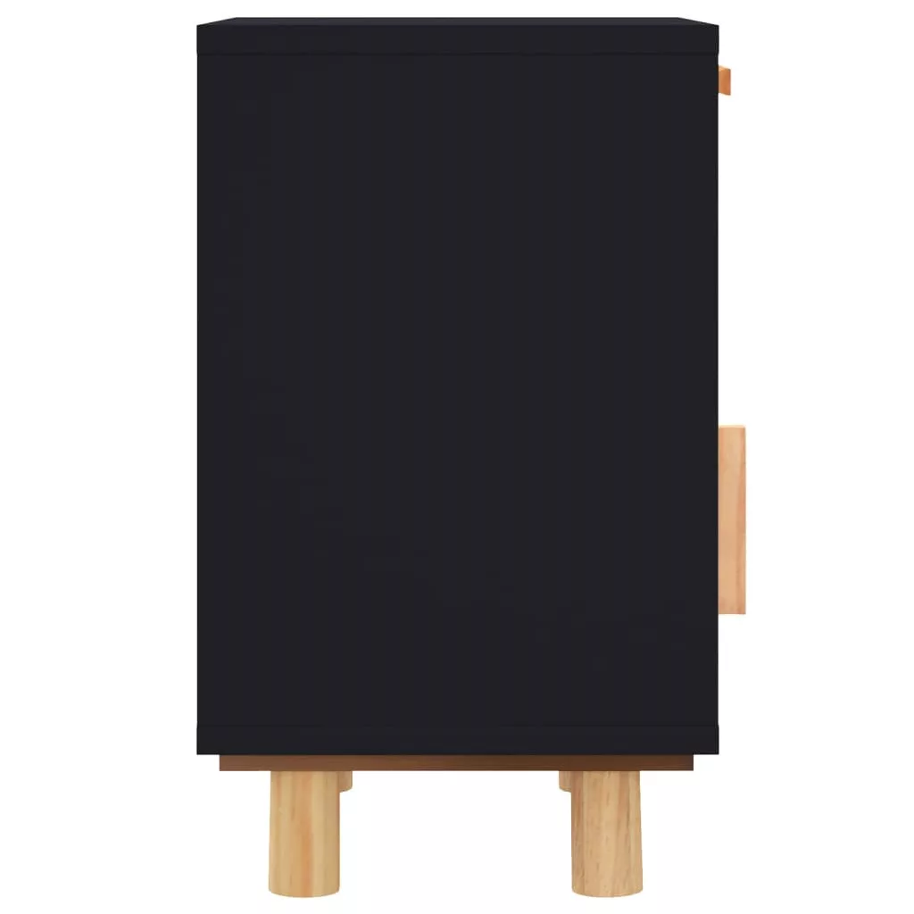 2 db fekete tömör fenyőfa és természetes rattan éjjeliszekrény