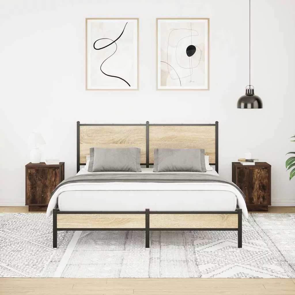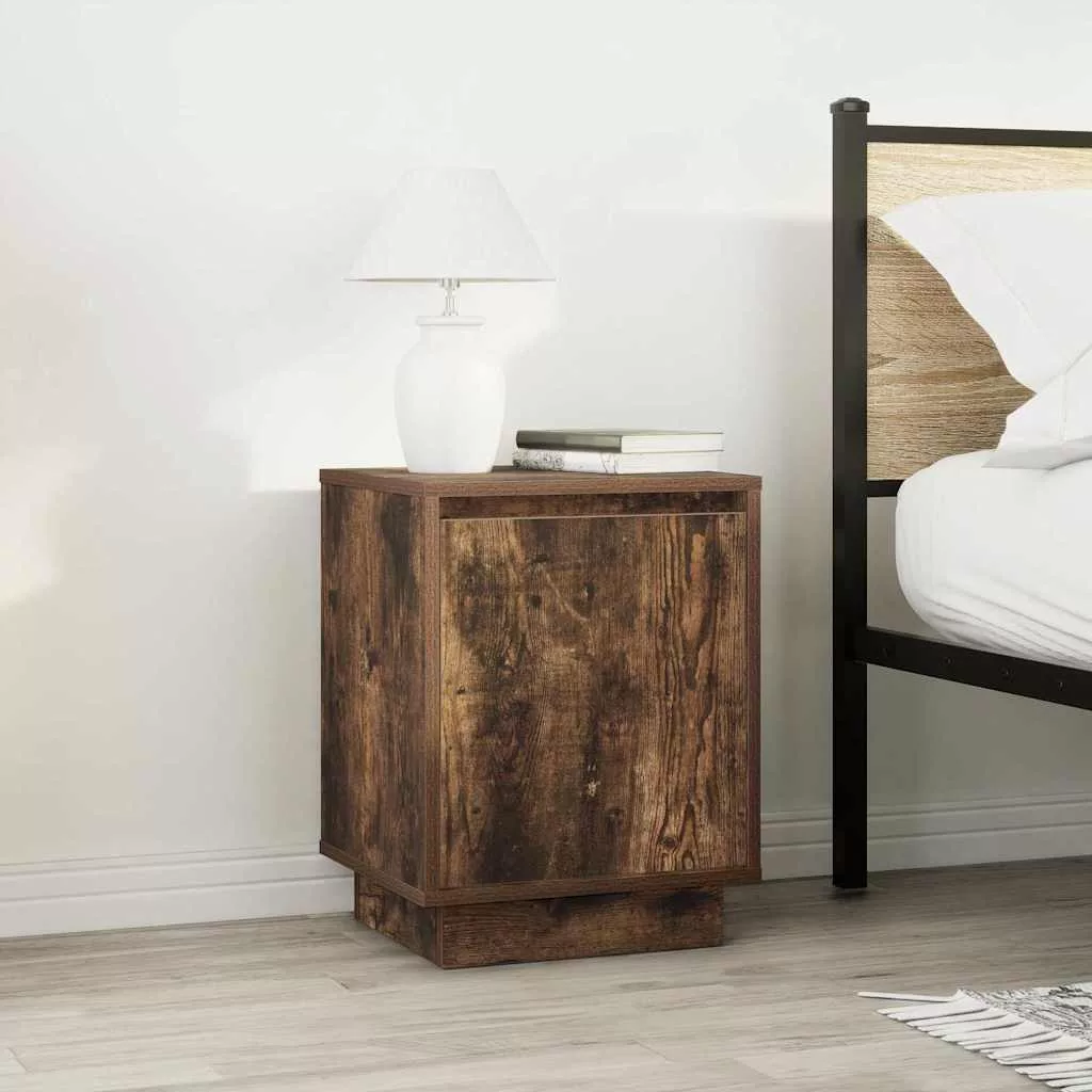 2 db füstölt tölgy éjjeliszekrények LED világítással 38x34x50cm