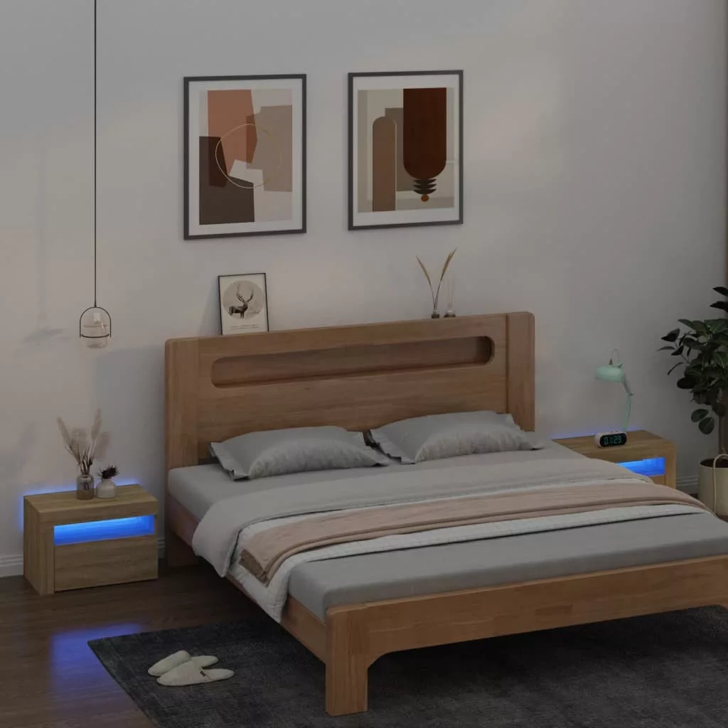 Ezek a divatos, mégis praktikus kialakítású éjjeliszekrények garantáltan a helyiség fénypontjai lesznek. Praktikus anyag: A szerelt fa kivételes minőségű, sima felületű, szilárd, stabil, és ellenáll a nedvességnek. A szerelt fából készült éjjeliszekrények könnyen tisztíthatók.RGB LED-világítás: Ezek az éjjeliszekrények RGB LED-világítással rendelkeznek, amely különféle menükkel rendelkezik a fény színének változtatására, és a szín automatikus váltakozása is beállítható. A LED-világítás kiemeli a szekrény modern kialakítását, és fokozza divatos hangulatát.Bőséges tárolóhely: Az éjjeliszekrények tárolóhelye megkönnyíti holmijai rendezett tárolását.Többfunkciós szekrény: A masszív felső lapok ideálisak dísztárgyak, képkeretek vagy cserepes növények elhelyezésére. Kisszekrényként, végasztalként stb. is használhatók. Megjegyzés:Az egyszerű összeszerelés érdekében minden termékhez mellékelünk összeszerelési útmutatót.A termék USB-csatlakozóval rendelkezik, ám a hitelesített 5 V-os USB áramforrást a csomag nem tartalmazza. Ne használja ezt az elemet, ha valamelyik alkatrésze eltört, elszakadt vagy hiányzik. Ez a termék DC 5V-ról működik, de a tanúsított 5V-os USB-tápforrást nem tartalmazza. A magasabb feszültség túlmelegedést okozhat, és a készülék károsodását, valamint a túlmelegedés és a tűz lehetséges kockázatát okozhatja.