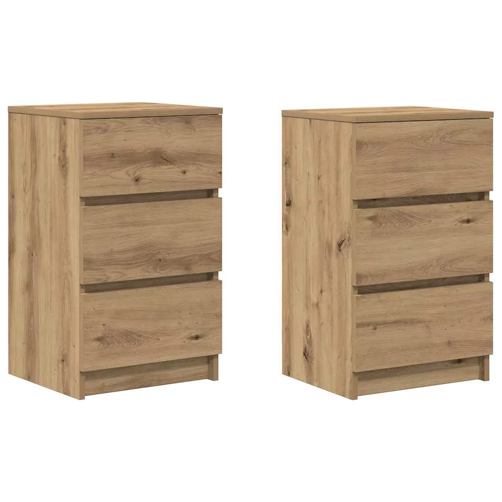 2 db kézműves tölgy éjjeliszekrények 3 fiókkal 39x35x65 cm