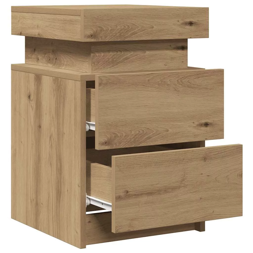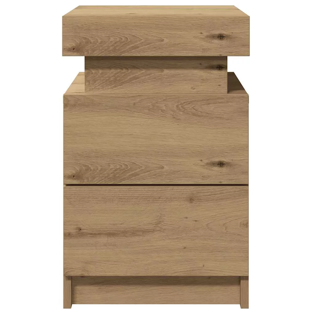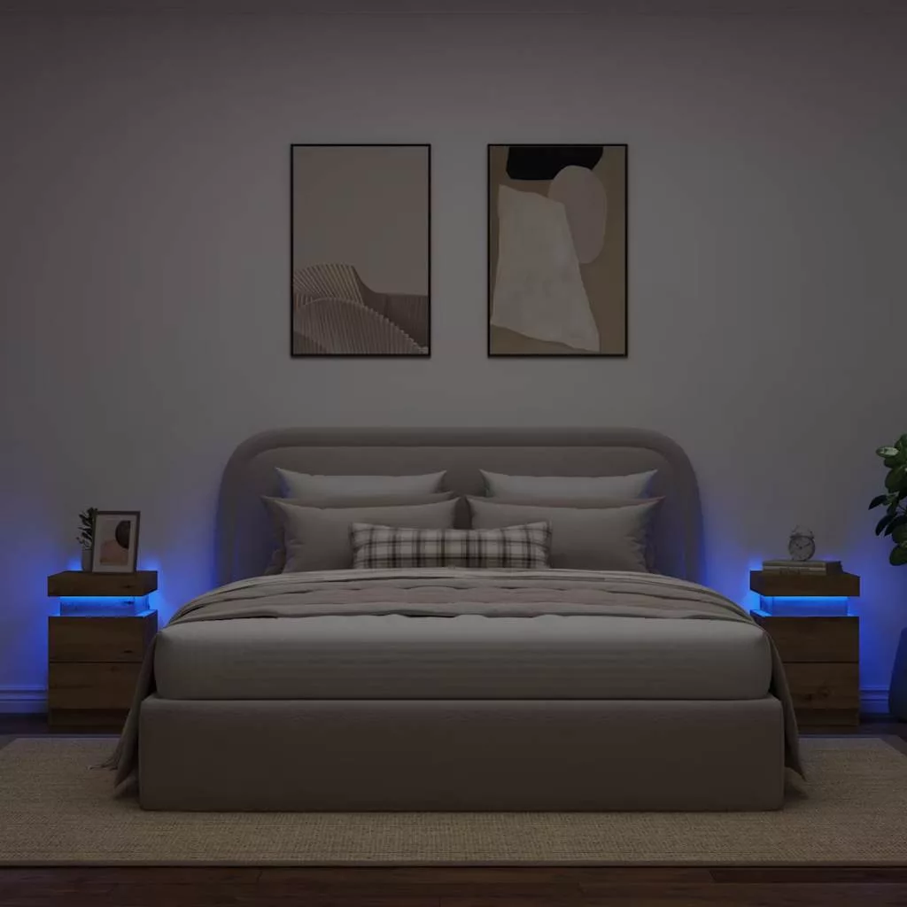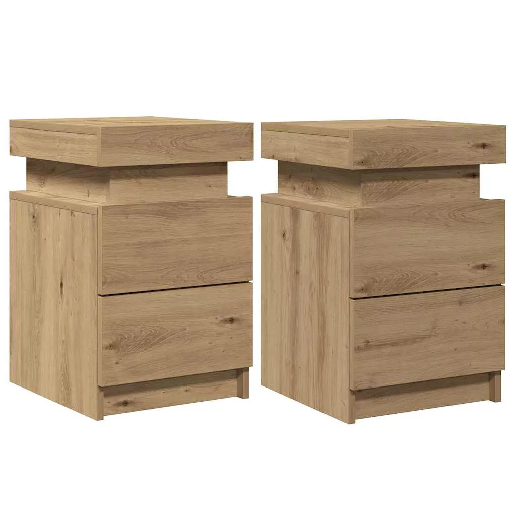2 db kézműves tölgy szerelt fa LED-es éjjeliszekrény 35x39x55cm