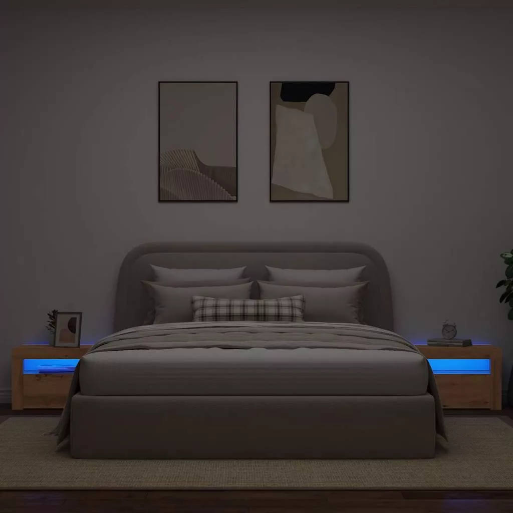 Ezek a divatos, mégis praktikus kialakítású éjjeliszekrények garantáltan a helyiség fénypontjai lesznek. Praktikus anyag: A szerelt fa kivételes minőségű, sima felületű, szilárd, stabil, és ellenáll a nedvességnek. A szerelt fából készült éjjeliszekrények könnyen tisztíthatók.RGB LED-világítás: Ezek az éjjeliszekrények RGB LED-világítással rendelkeznek, amely különféle menükkel rendelkezik a fény színének változtatására, és a szín automatikus váltakozása is beállítható. A LED-világítás kiemeli a szekrény modern kialakítását, és fokozza divatos hangulatát.Bőséges tárolóhely: Az éjjeliszekrények tárolóhelye megkönnyíti holmijai rendezett tárolását.Többfunkciós szekrény: A masszív felső lapok ideálisak dísztárgyak, képkeretek vagy cserepes növények elhelyezésére. Kisszekrényként, végasztalként stb. is használhatók. Jó tudni:A termék USB-csatlakozóval rendelkezik, amelyhez hitelesített, 5 V-os USB áramforrás szükséges (nem alaptartozék). Ne használja ezt az elemet, ha valamelyik alkatrésze eltört, elszakadt vagy hiányzik. Ez a termék DC 5V-ról működik, de a tanúsított 5V-os USB-tápforrást nem tartalmazza. A magasabb feszültség túlmelegedést okozhat, és a készülék károsodását, valamint a túlmelegedés és a tűz lehetséges kockázatát okozhatja.