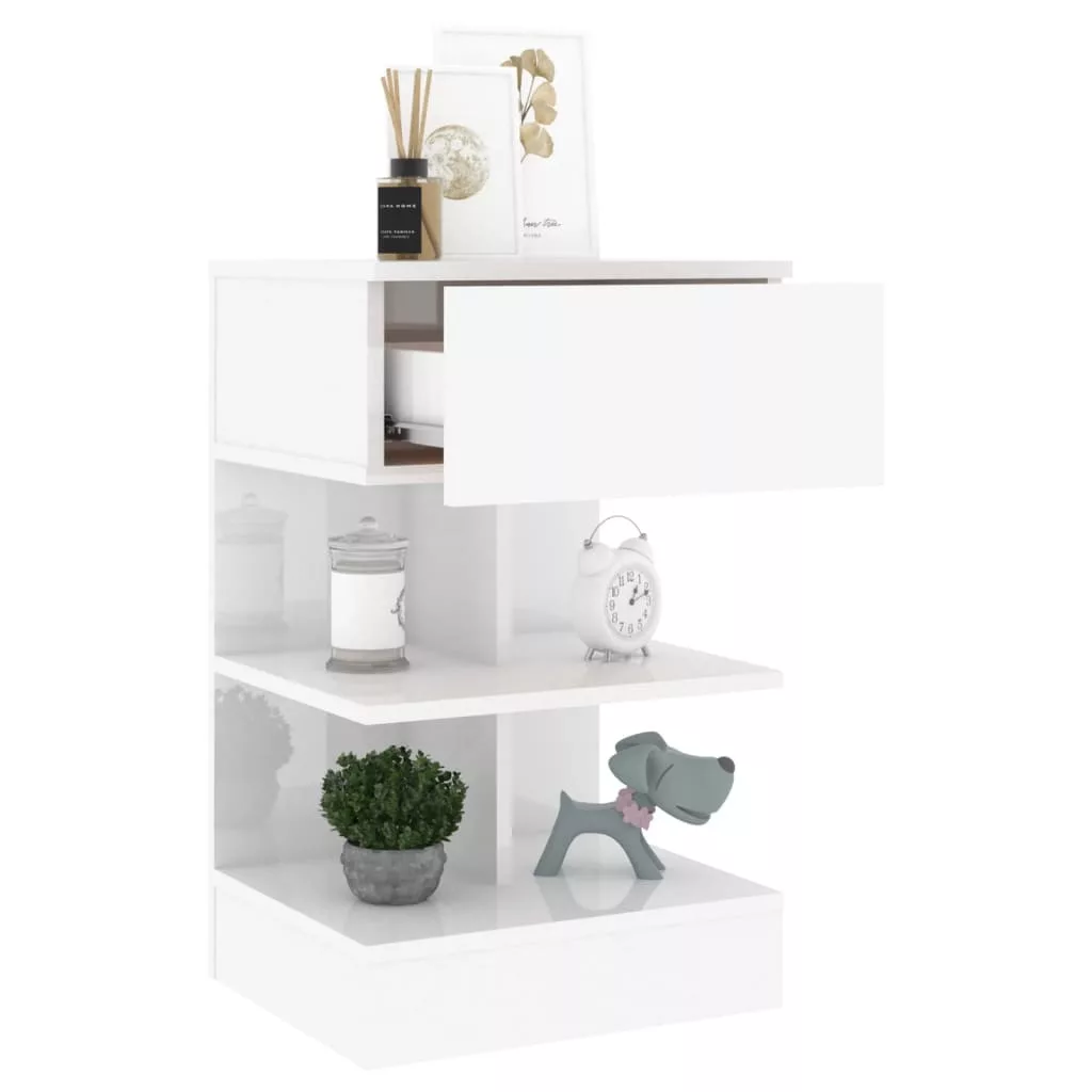 2 db magasfényű fehér éjjeliszekrény 40 x 35 x 65 cm