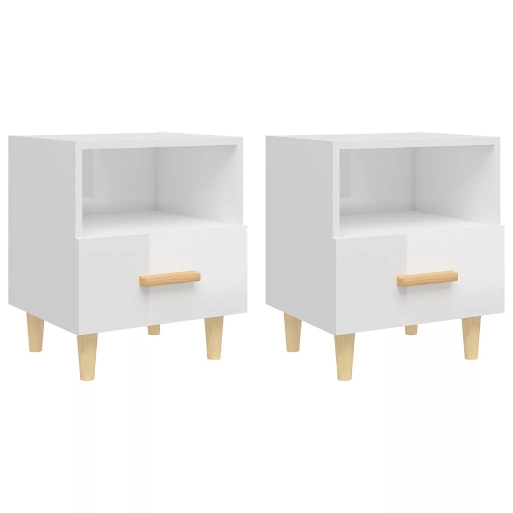2 db magasfényű fehér éjjeliszekrény 40x35x47 cm