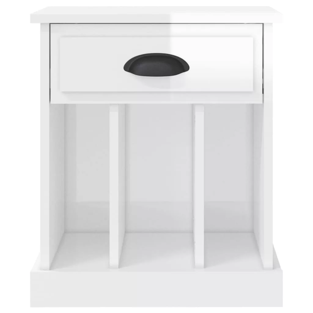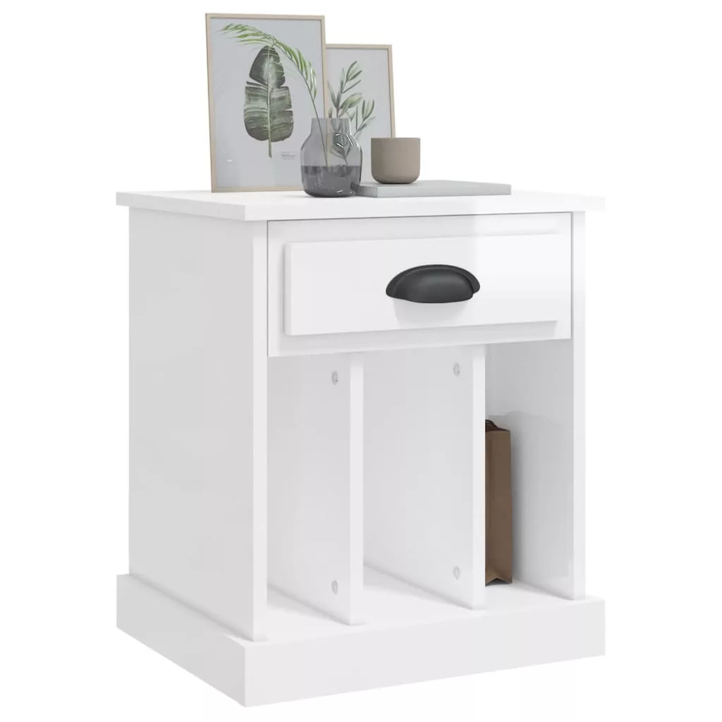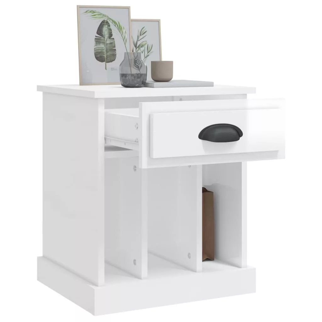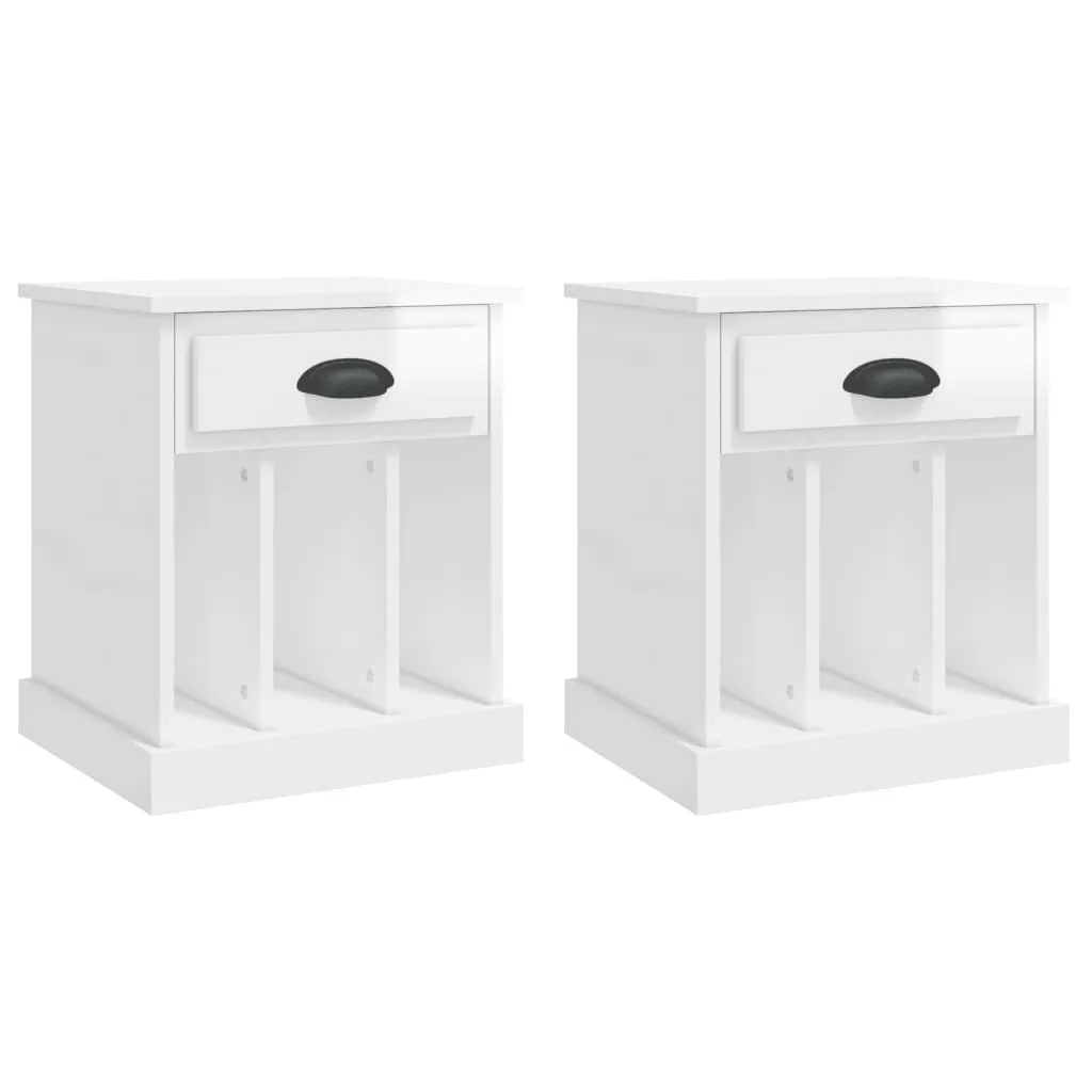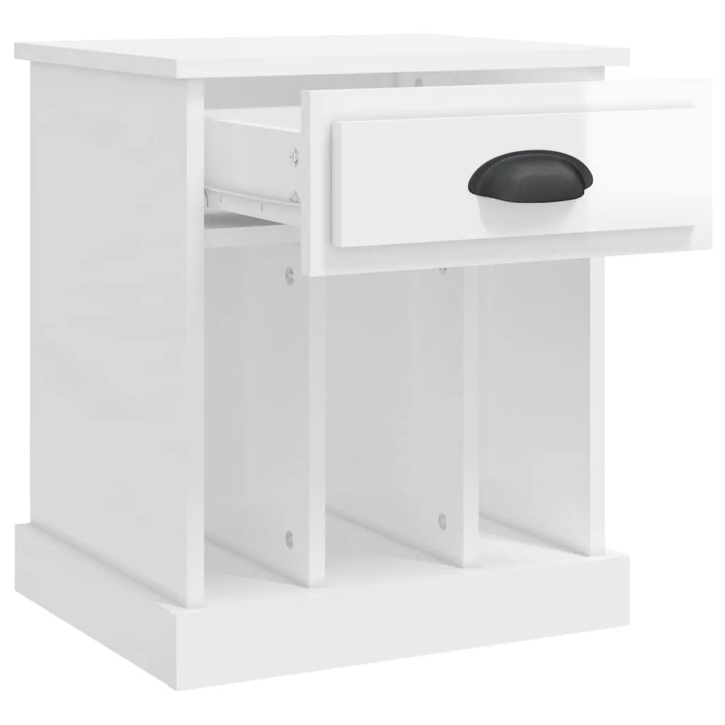 2 db magasfényű fehér éjjeliszekrény 43x36x50 cm