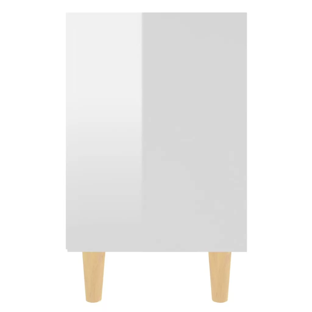 2 db magasfényű fehér éjjeliszekrény fa lábakkal 40x30x50 cm