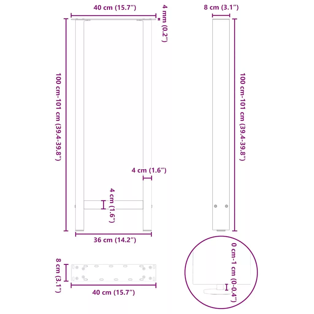 Ezek a bárasztal lábak ötvözik a formát és a funkciót. Ideális választás bárasztalod személyre szabásához. Tartós anyag: Ez a bárasztal láb porszórt acélból készült, így masszív és hosszú élettartamú.Masszív szerkezet: A bárasztal lábának négyzet alakú kialakítása biztosítja, hogy elbírja a nehéz asztallapot.Praktikus kialakítás: Ez a bárasztal láb állítható lábszintezőkkel rendelkezik, amelyek biztosítják a stabilitást még egyenetlen padlón is, és minimalizálják a padló karcolódását. Ezenkívül a konzol előre fúrt lyukakkal és a szállítmányban található csavarokkal rendelkezik, amelyekkel a láb az asztallaphoz rögzíthető (nem tartozék), így könnyen összeszerelhető.Modern esztétika: Az asztalláb letisztult vonalakkal és geometrikus kialakítással rendelkezik, hogy javítsa a bútor összképét. És bármilyen megfelelő méretű asztallaphoz jól illik.Jó tudni:A szállítmány csak az asztallábakat tartalmazza, az asztallap nem része a csomagnak.