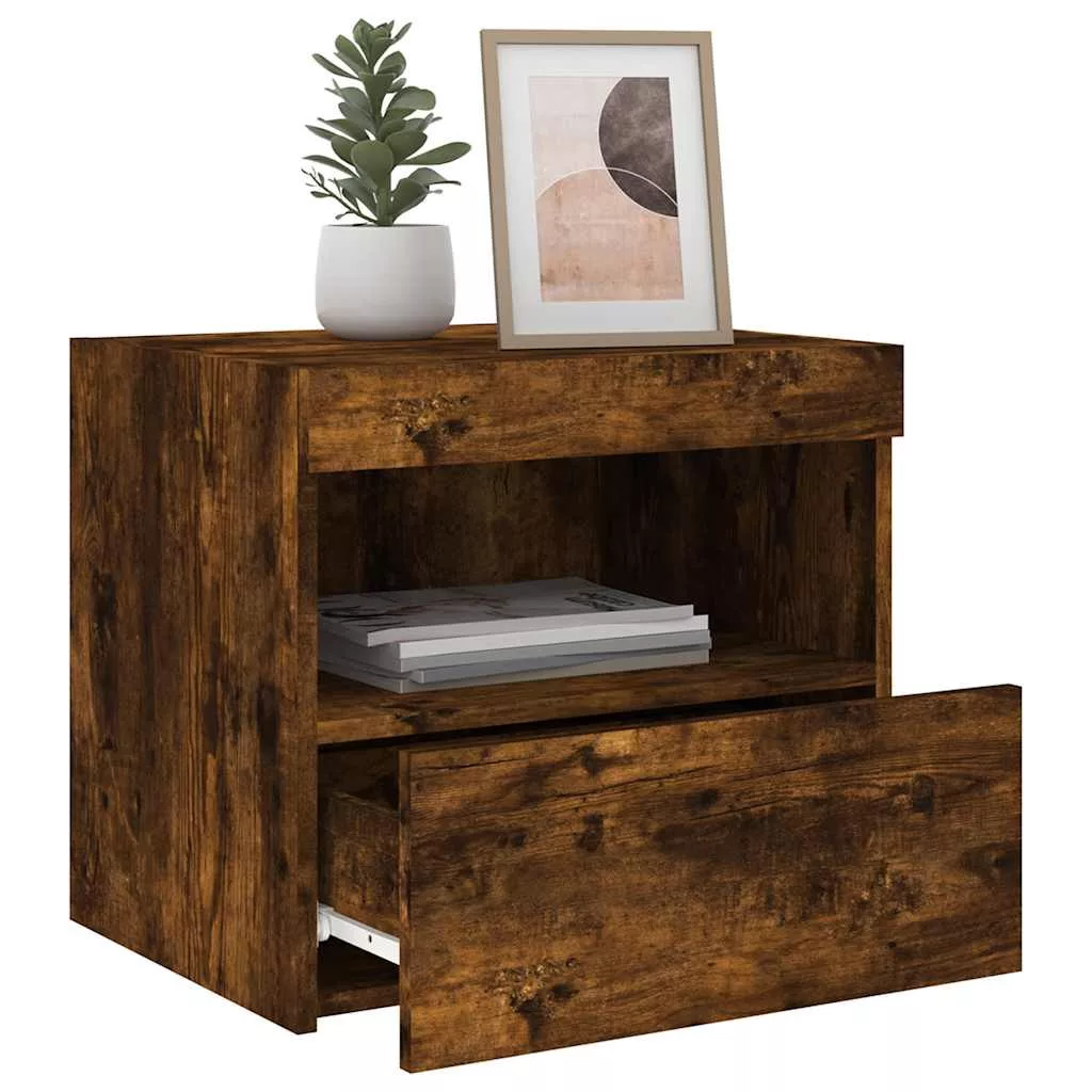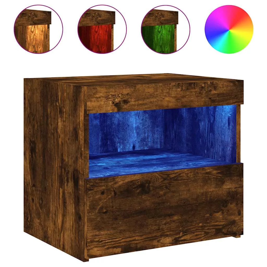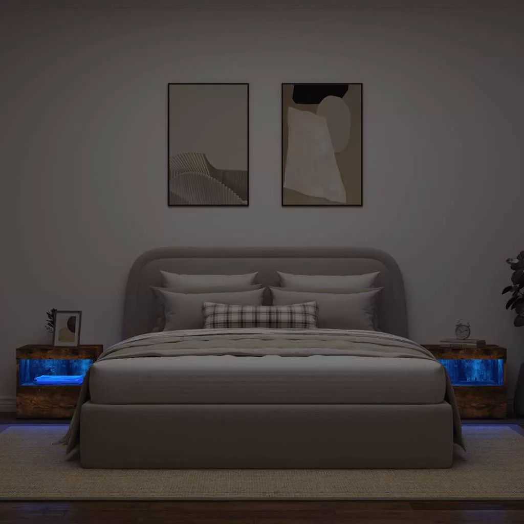 2 db sonoma tölgy éjjeliszekrény LED-fényekkel 50x40x45 cm