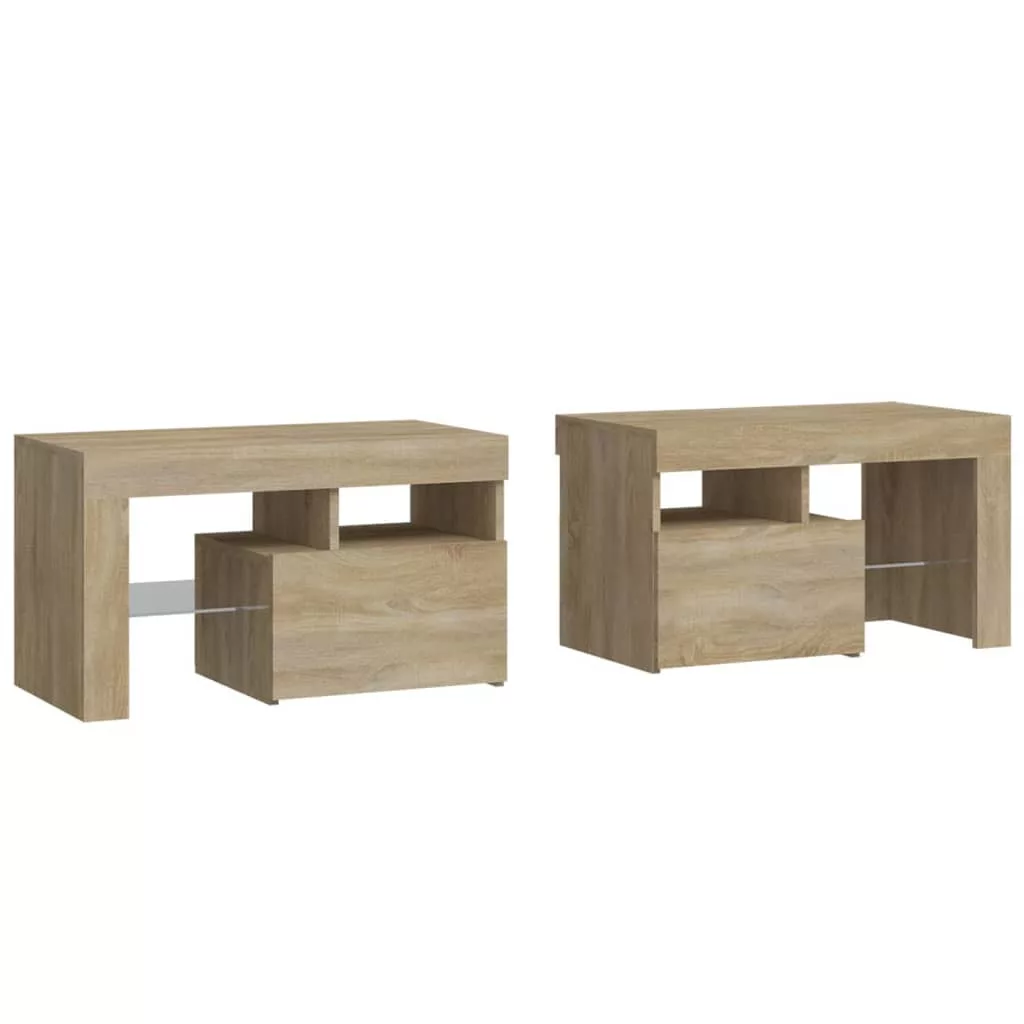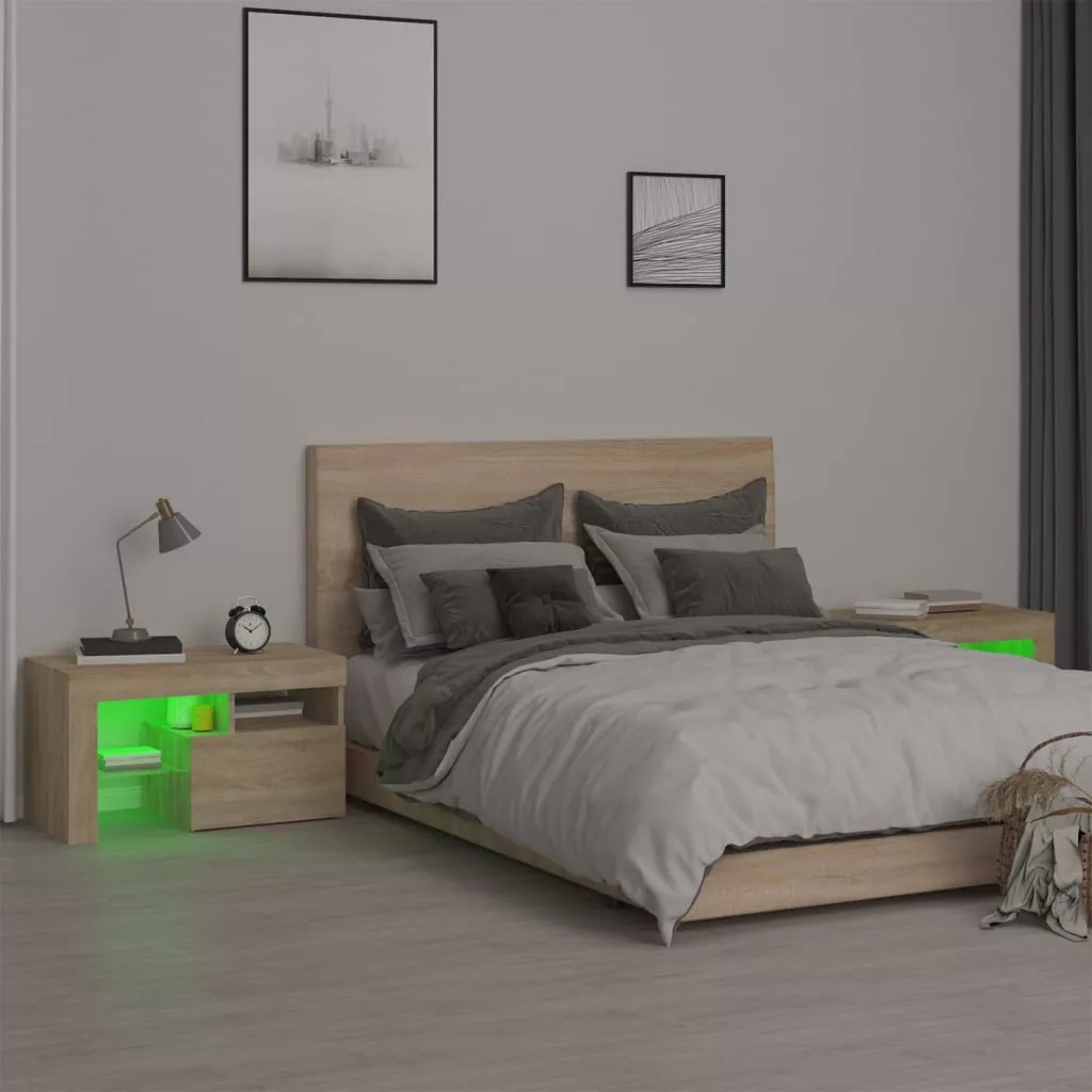 vidaXL 2 db sonoma tölgy színű LED-lámpás éjjeliszekrény 70x36,5x40 cm