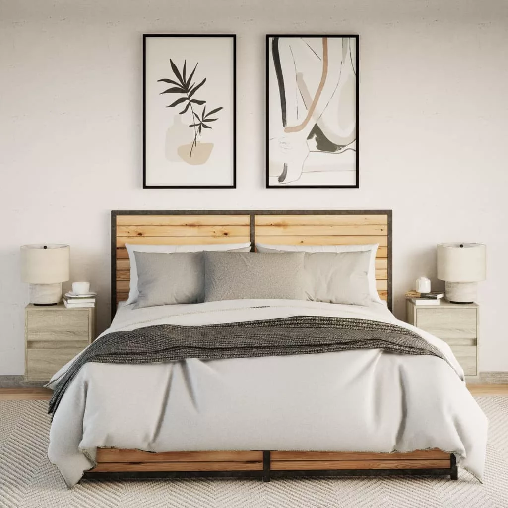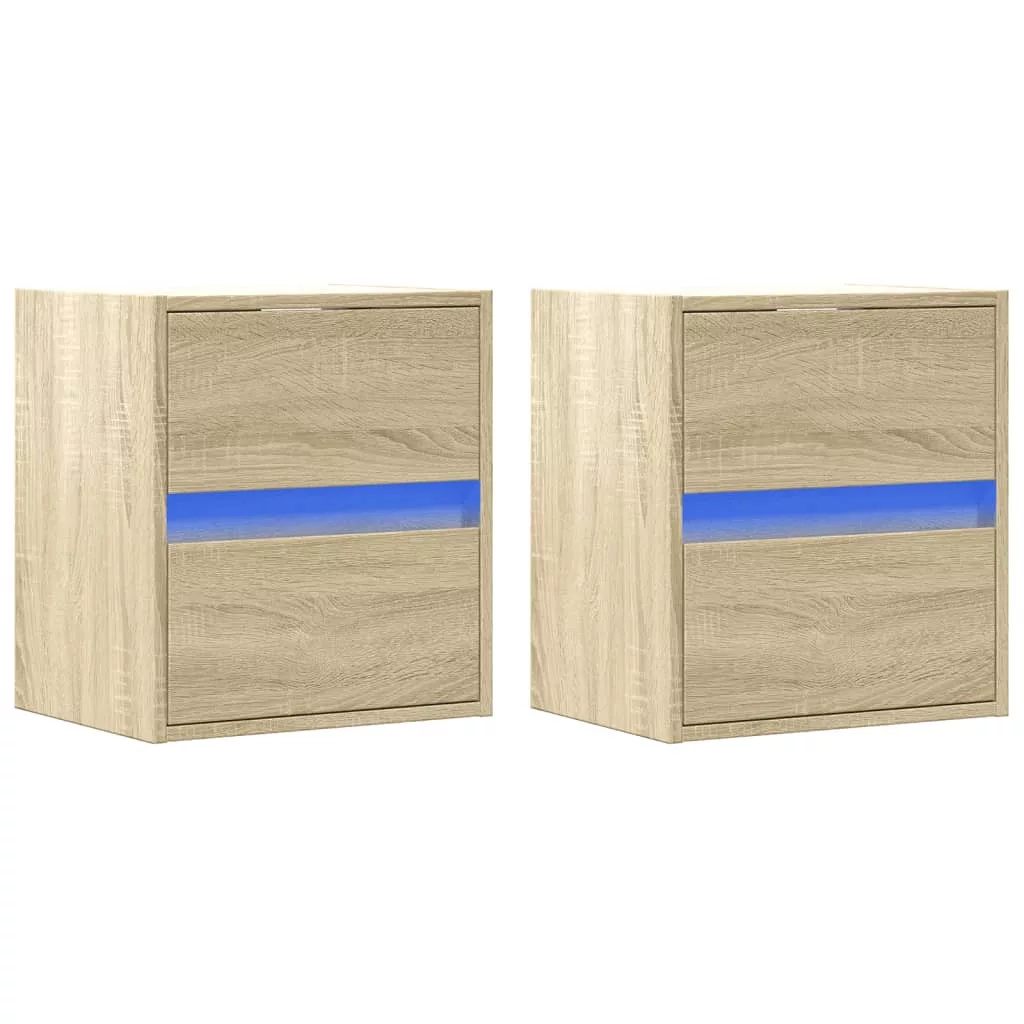 2 db sonoma tölgy színű fali éjjeliszekrény LED-világítással