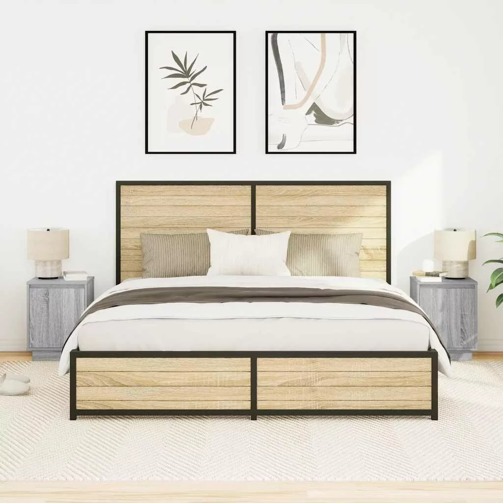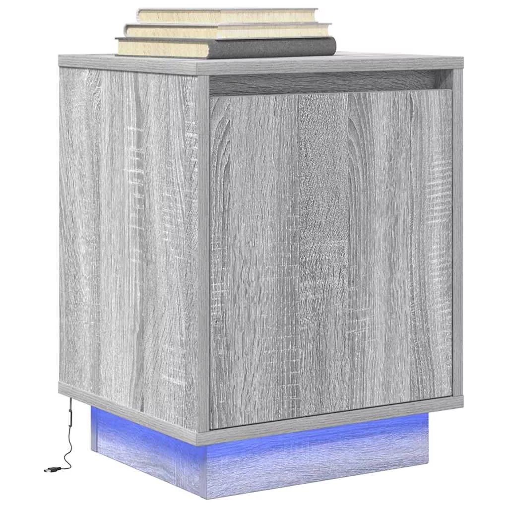 2 db szürke sonoma éjjeliszekrények LED világítással 38x34x50cm