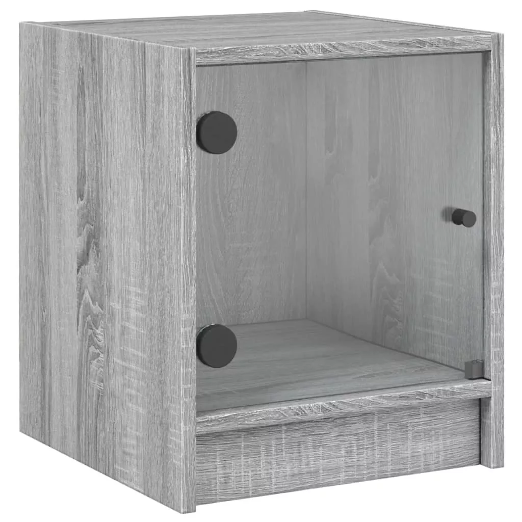 2 db szürke sonoma színű éjjeliszekrény üvegajtóval 35x37x42 cm