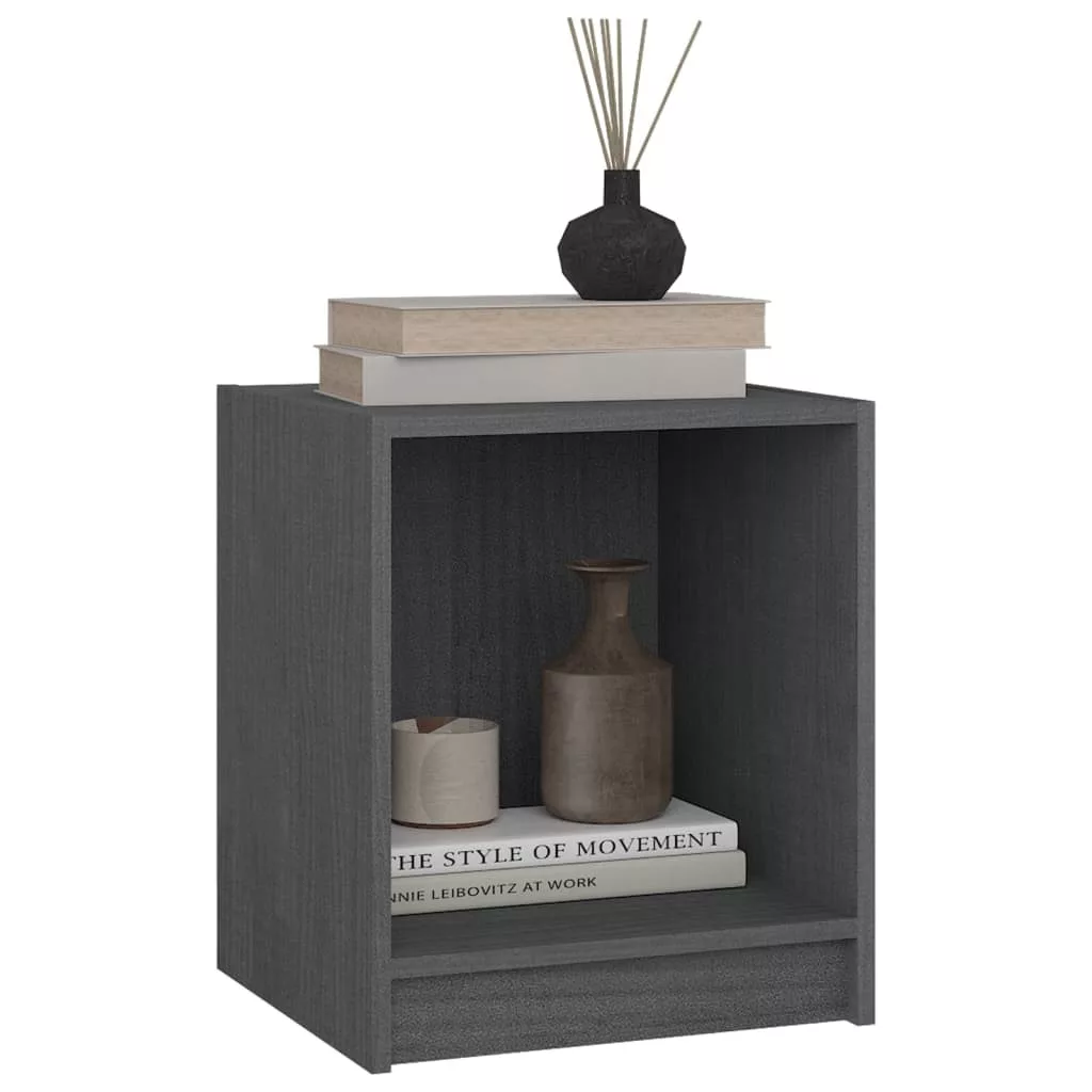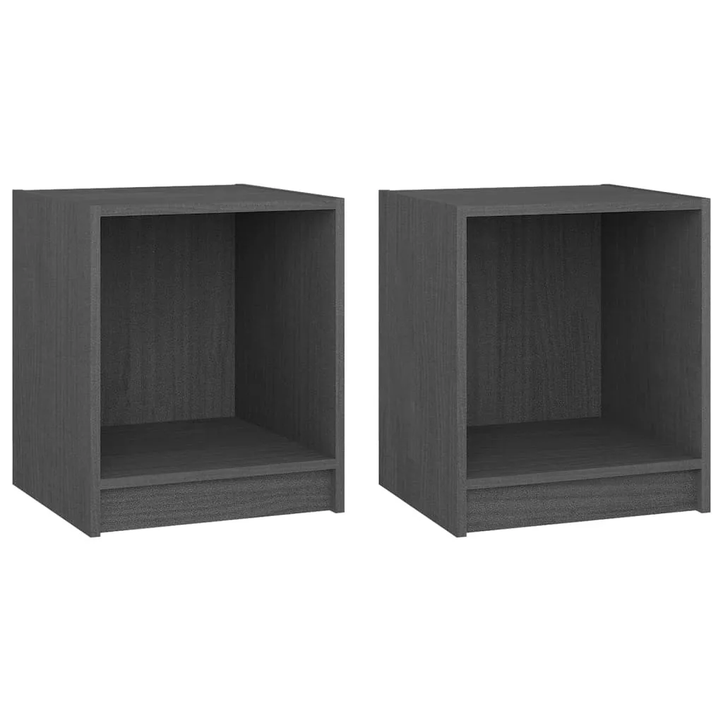 2 db szürke tömör fenyőfa éjjeliszekrény 35,5 x 33,5 x 41,5 cm