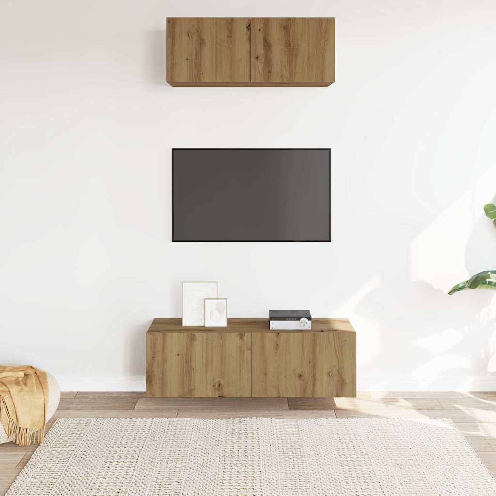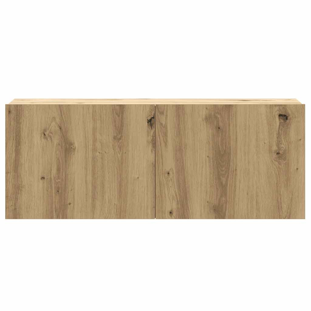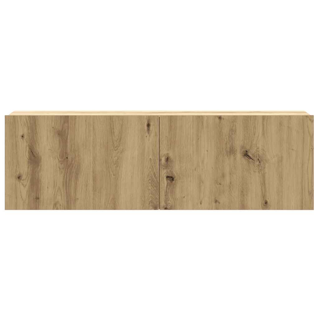 2 részes kézműves tölgy színű szerelt fa fali TV-szekrényszett