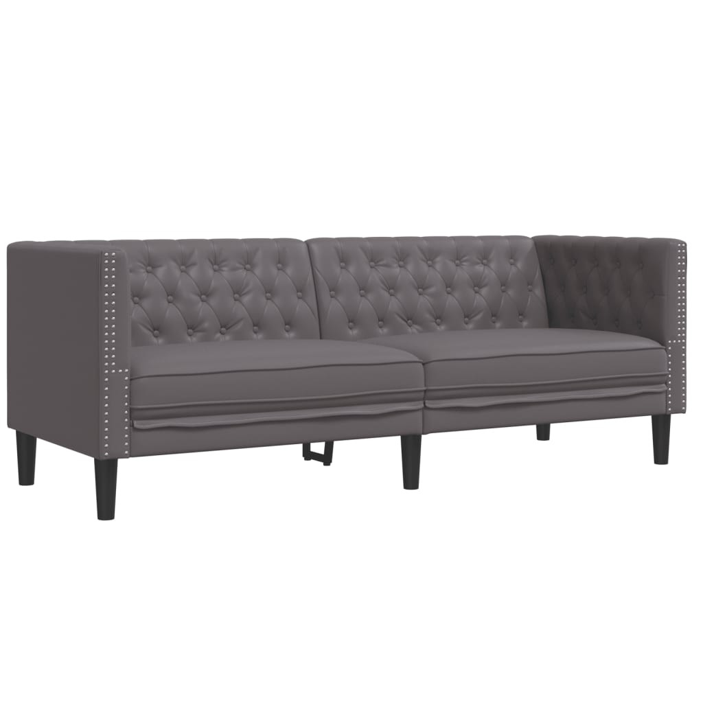 2 részes szürke műbőr Chesterfield kanapégarnitúra