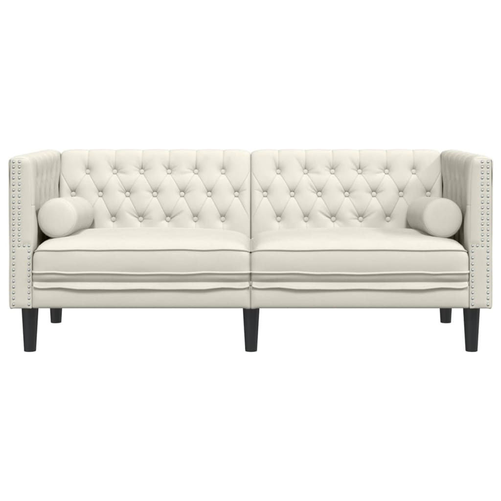 2 személyes krémszínű bársony Chesterfield kanapé párnákkal