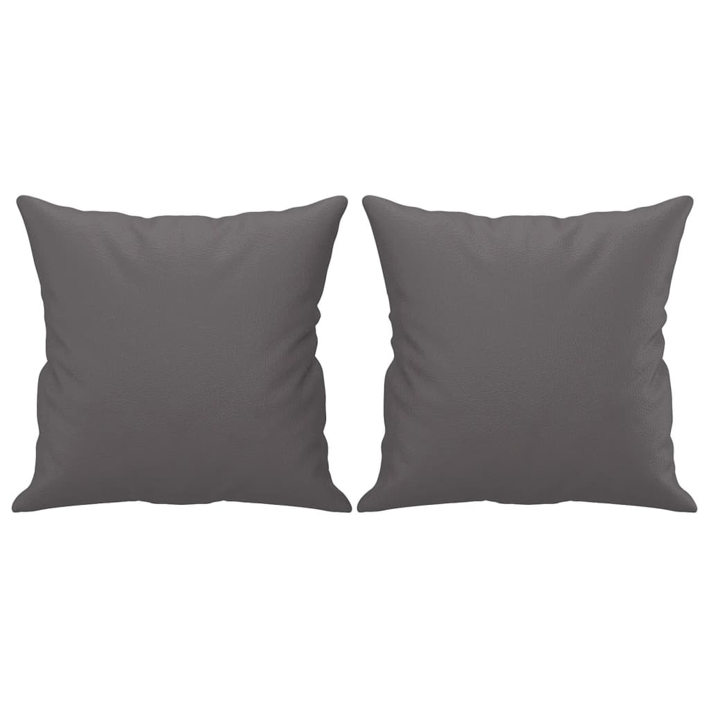 2 személyes szürke műbőr kanapé díszpárnákkal 120 cm