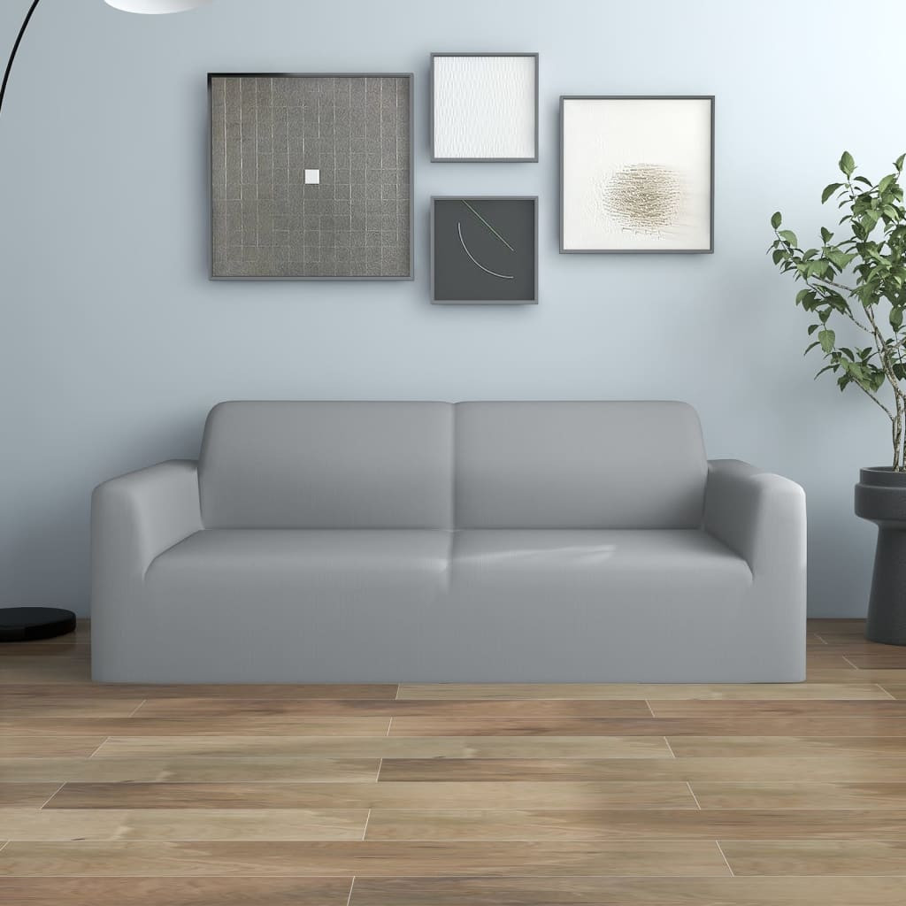 2-személyes szürke sztreccs poliészterdzsörzé kanapé-védőhuzat