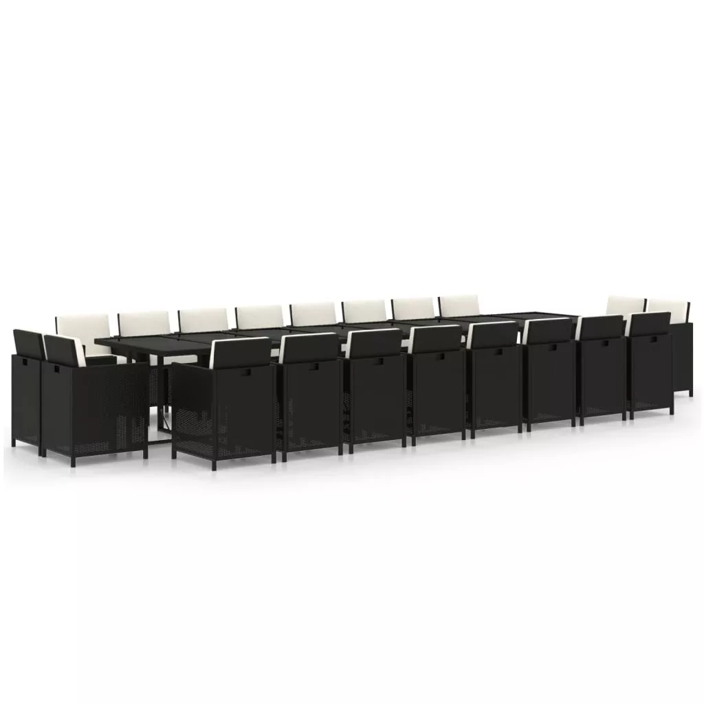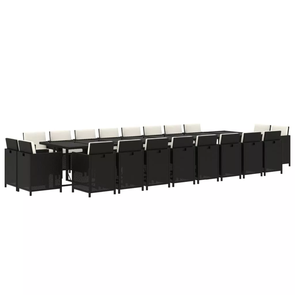Ez az elegáns és egyedi kialakítású polirattan kerti étkezőgarnitúra nagyszerű választás étkezéshez és pihenéshez kültéri környezetében. Praktikus anyag: Ez az időjárásálló polietilén rattan bevonattal ellátott kültéri étkezőgarnitúra könnyen tisztítható és strapabíró, így éveken át biztosít minőségi pihenést.Stabil és erős szerkezet: A kerti asztal és székek acél vázai erős szerkezetet és stabilitást biztosítanak.Rugalmas székek: A háttámlákat ledöntheti, és az asztal alatt tárolhatja a kültéri székeket, így használaton kívül értékes tárolóhelyet takaríthat meg.Kényelmes ülőfelület: A vastag, puha, habszivaccsal töltött ülő- és hátpárnák tovább növelik a székek kényelmét. Megjegyzés:Kerti bútora élettartamának meghosszabbítása érdekében javasoljuk, hogy védje vízálló takaróval. Maksimális 110 kg ülésenként. Legyen tudatában a nyílt tűz és más erős hőforrások kockázatának a termék környezetében.