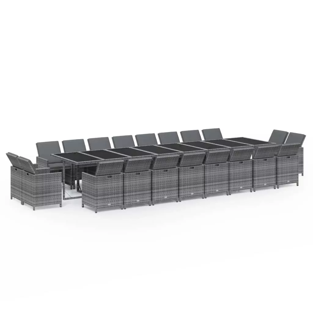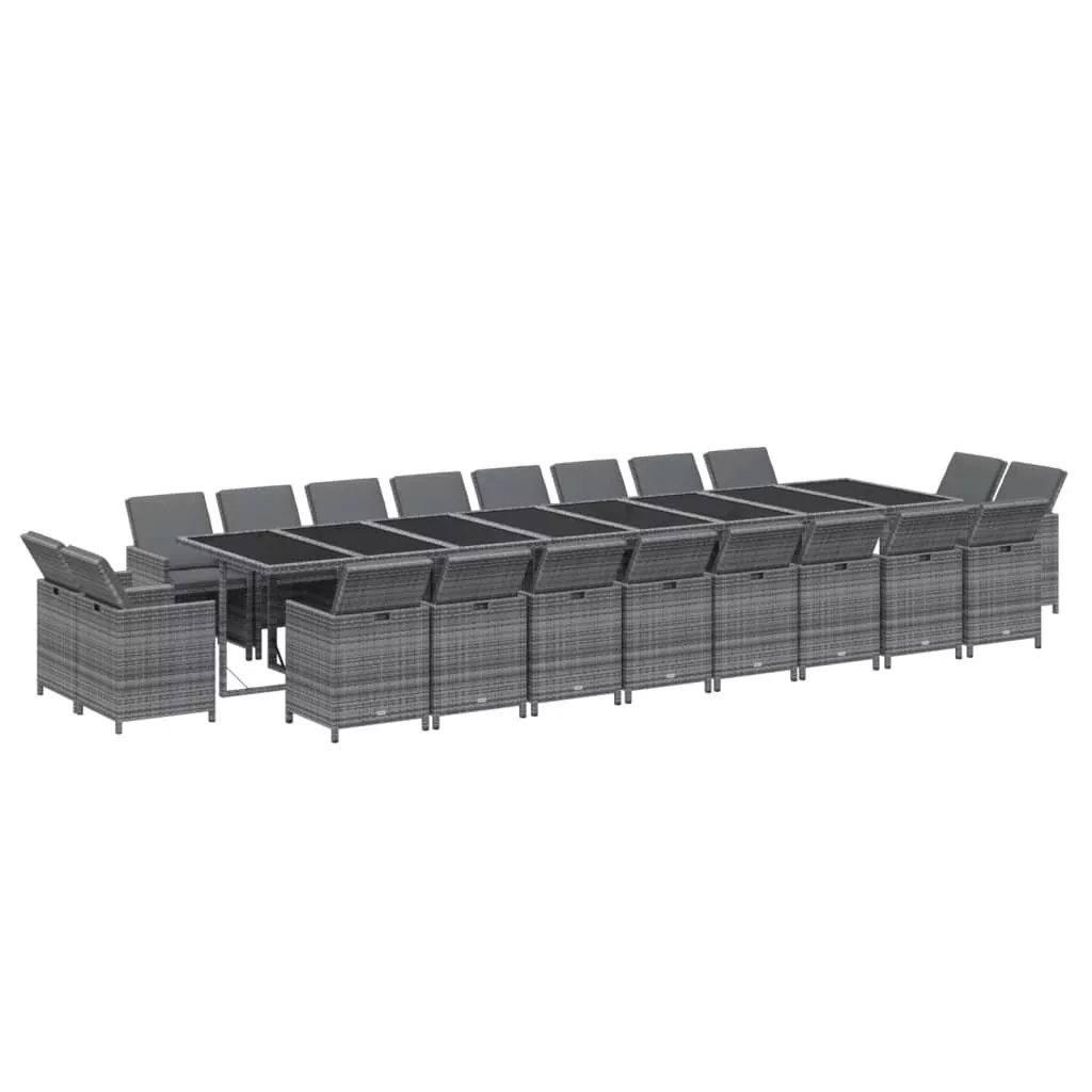 Ez az elegáns és egyedi kialakítású polirattan kerti étkezőgarnitúra nagyszerű választás étkezéshez és pihenéshez kültéri környezetében. Praktikus anyag: Ez az időjárásálló polietilén rattan bevonattal ellátott kültéri étkezőgarnitúra könnyen tisztítható és strapabíró, így éveken át biztosít minőségi pihenést.Stabil és erős szerkezet: A kerti asztal és székek acél vázai erős szerkezetet és stabilitást biztosítanak.Rugalmas székek: A háttámlákat ledöntheti, és az asztal alatt tárolhatja a kültéri székeket, így használaton kívül értékes tárolóhelyet takaríthat meg.Kényelmes ülőfelület: A vastag, puha, habszivaccsal töltött ülő- és hátpárnák tovább növelik a székek kényelmét. Megjegyzés:Kerti bútora élettartamának meghosszabbítása érdekében javasoljuk, hogy védje vízálló takaróval. Maksimális 110 kg ülésenként. Legyen tudatában a nyílt tűz és más erős hőforrások kockázatának a termék környezetében.