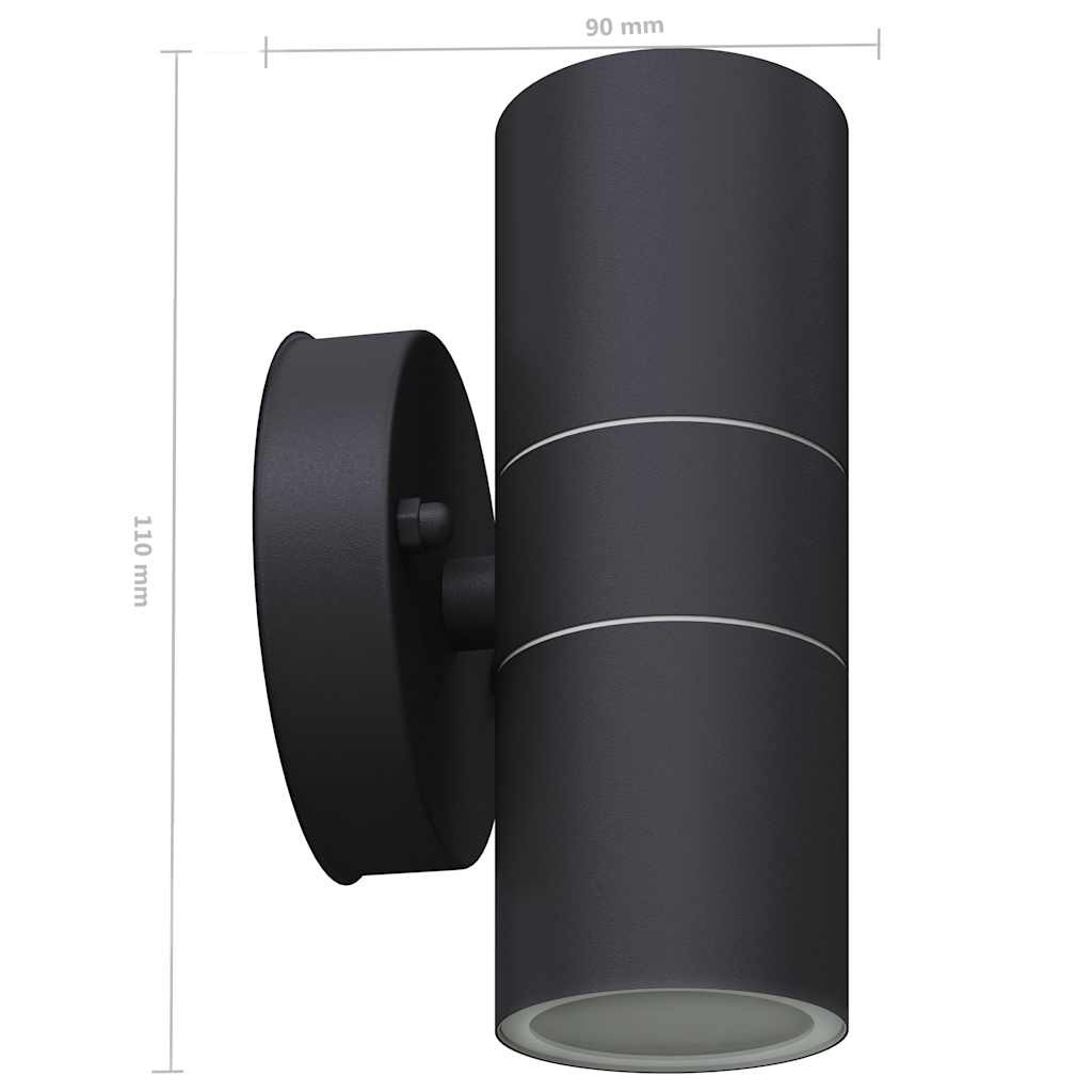 Ez az elegáns kültéri LED fali lámpa visszafogott, modern kialakítású. Feketére festett rozsdamentes acélból készült, így bármilyen kültéri helyiséget feldob. Integrált üveg szóróernyővel szerelték fel. A beépített LED izzóknak köszönhetően ez a kültéri fali lámpa szett kellemes, meleg fehér fénnyel ragyogja be a teret felfelé és lefelé is. IP44-es besorolású, így ez a fali lámpa ellenáll az időjárás viszontagságainak és strapabíró. Kiválóan alkalmas kültéri használatra. A szállítmány 2 fali lámpát tartalmaz. Ezt a készüléket nem használhatják csökkent fizikai, érzékszervi vagy szellemi képességű, illetve tapasztalattal és tudással nem rendelkező személyek (beleértve a gyermekeket is), kivéve, ha a biztonságukért felelős személy felügyeli őket, vagy utasításokat kaptak a készülék használatára vonatkozóan. Ez a termék nem játék. Ne engedje, hogy gyerekek játsszanak a készülékkel.